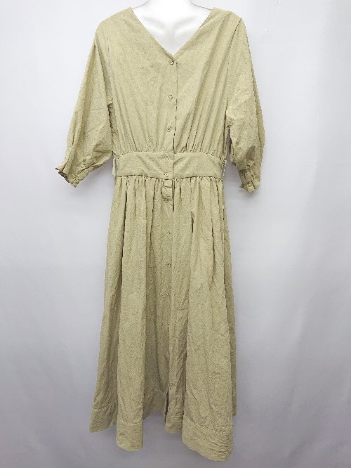 ◇ ◎ natural couture ナチュラルクチュール 七分袖 膝下丈 ワンピース サイズF カーキベージュ系 レディース P