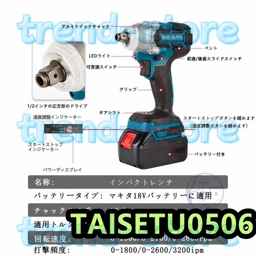 インパクトレンチ 電動 タイヤ交換 マキタ 18Vバッテリー対応 インパクトドライバー 充電式インパクトレンチ レンチ 無段変速 正逆転両用
