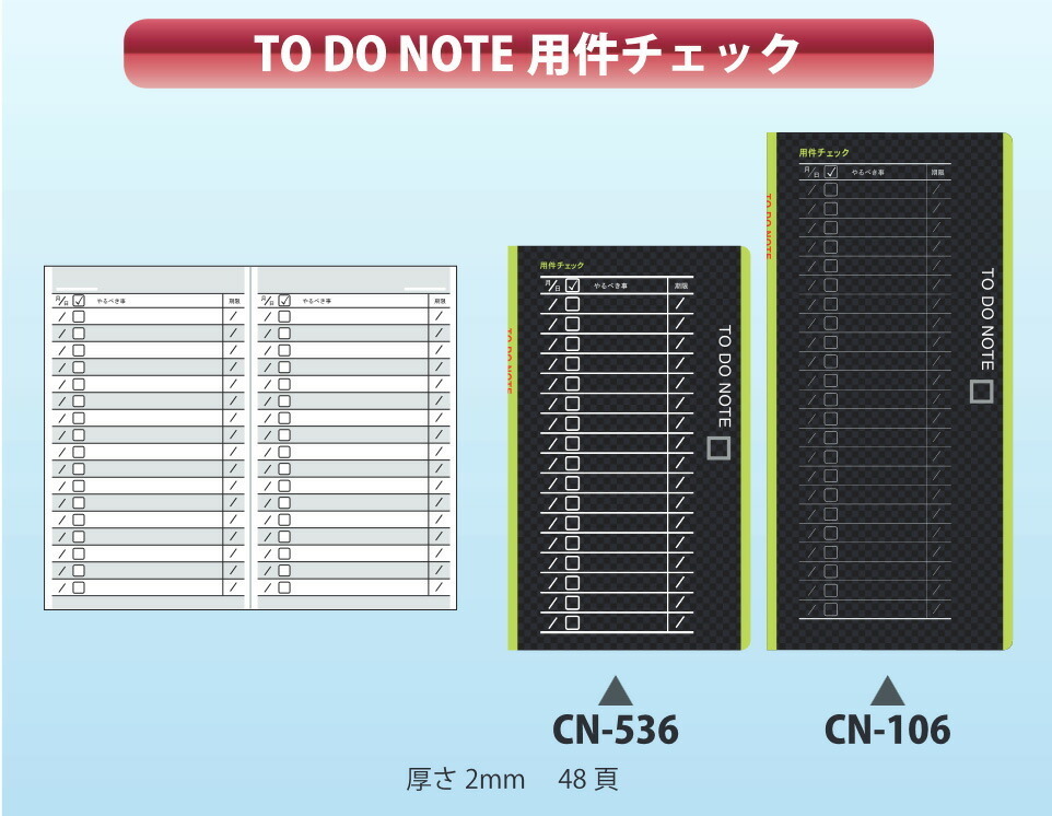 ・サイズ:紙幣サイズ、用件チェック TO DO 48ページ 厚さ2mm