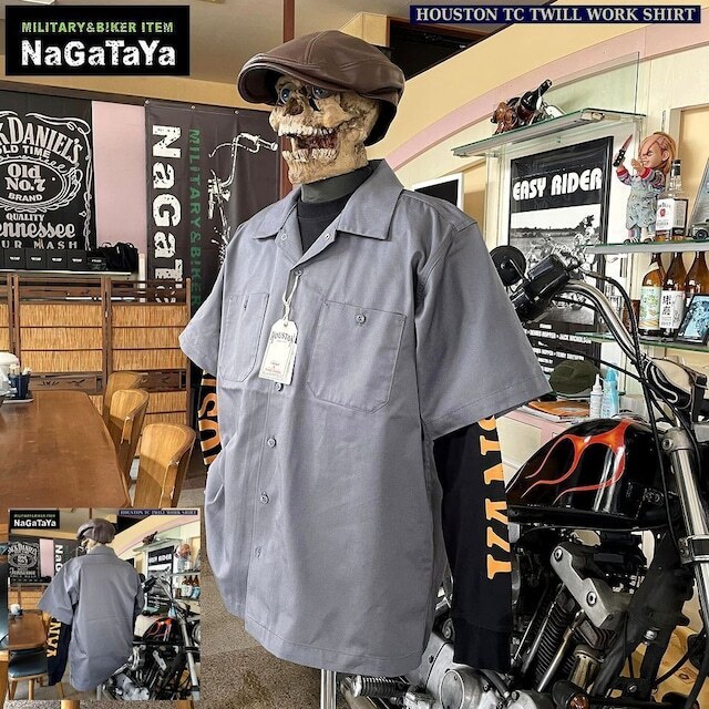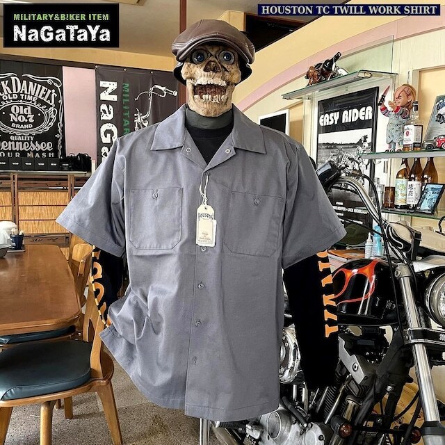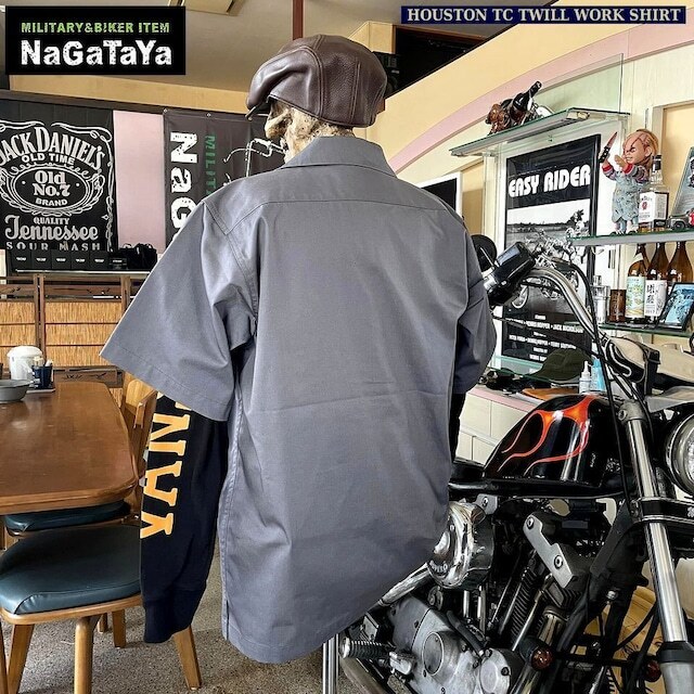 HOUSTON ヒューストン TC TWILL WORK S/S SHIRT ツイル ワークシャツ 41074 グレー XLサイズ アメリカンワークスタイル