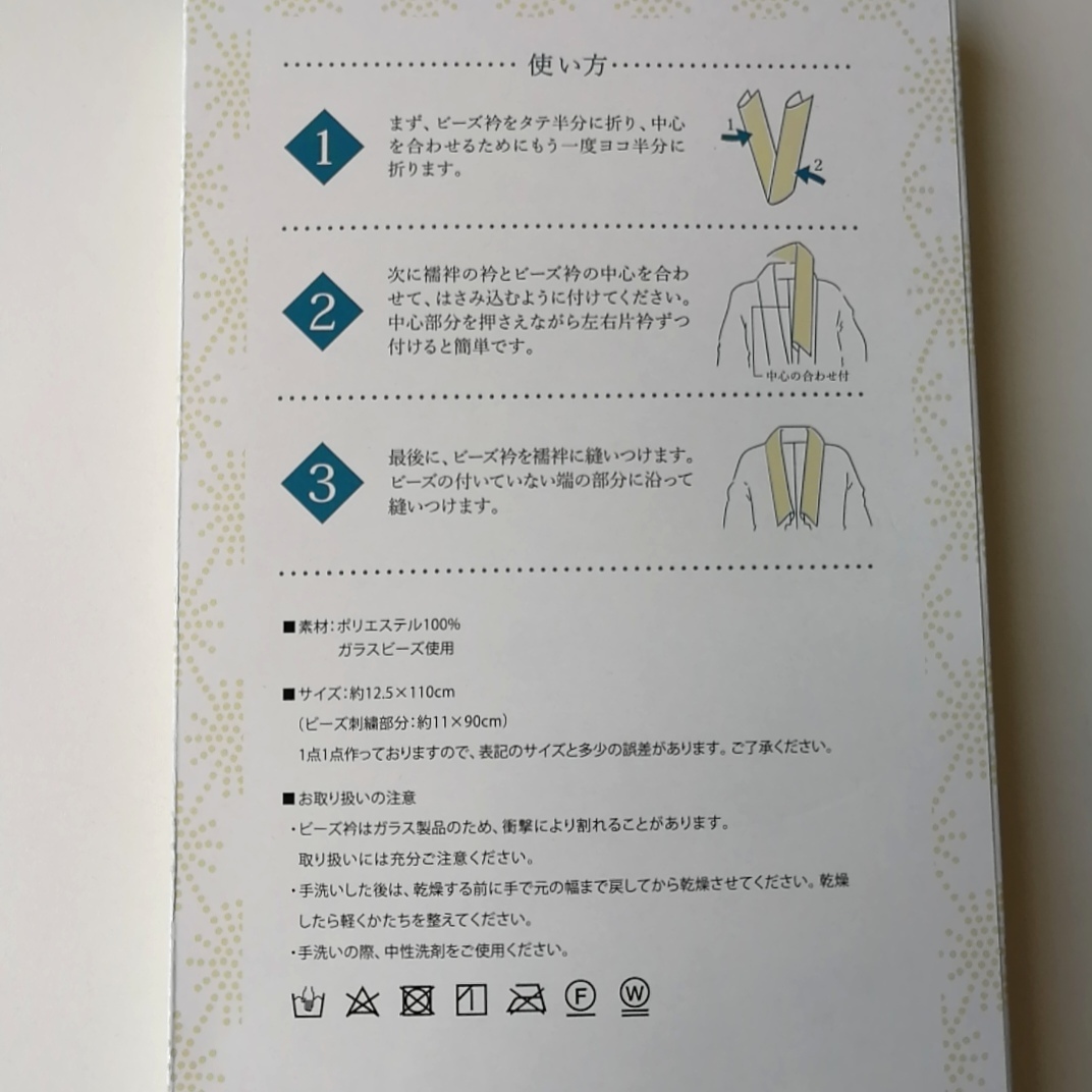 ■ビーズ衿はガラス製品のため衝撃により割れることがあります。お取り扱いには十分ご注意ください。