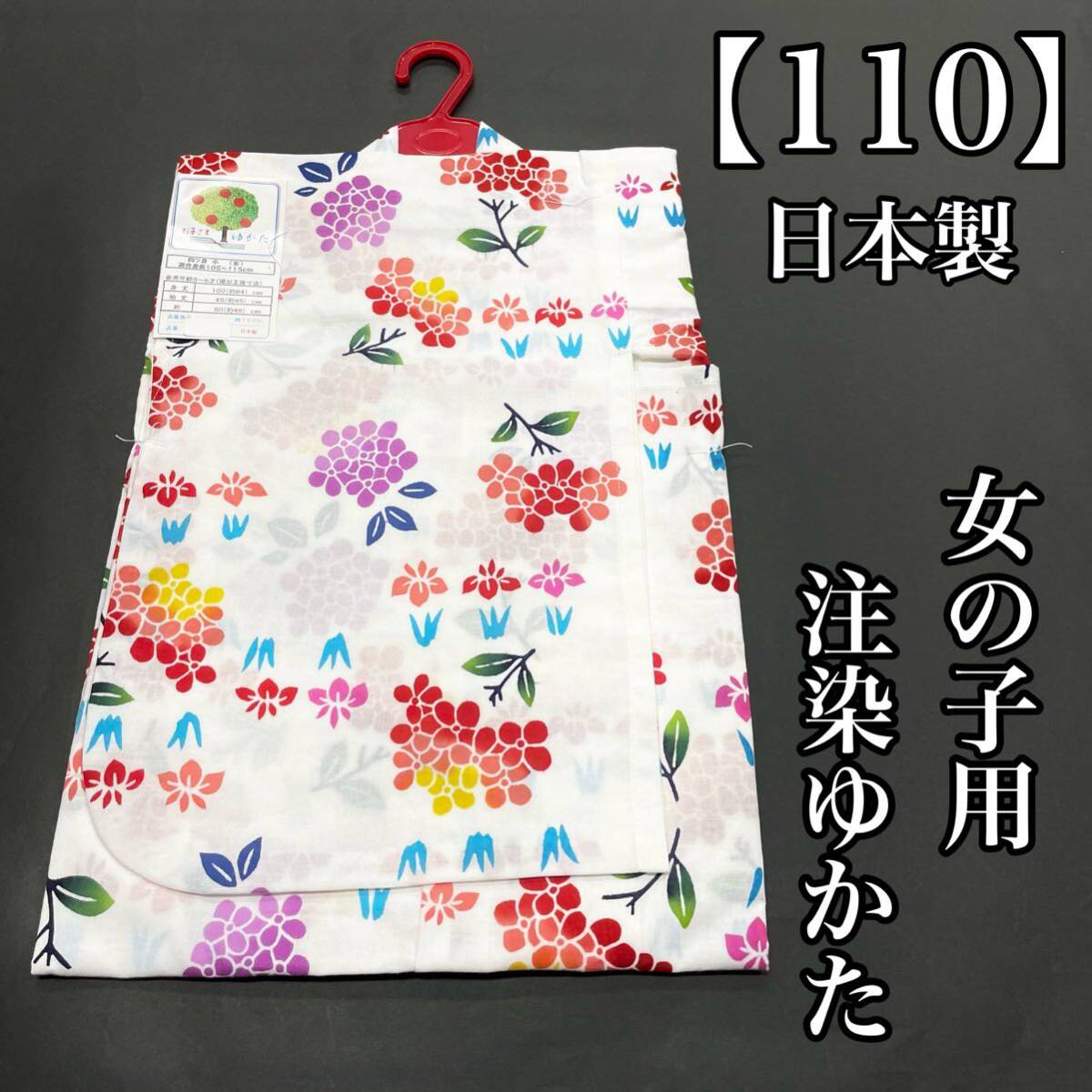 新品 注染 女の子浴衣 110 女の子 浴衣 ゆかた 綿浴衣 子供浴衣 子供用浴衣 女の子用 綿 女 115 105 5才 5歳 6才 6歳 日本製 白色 白