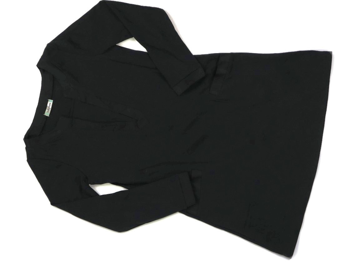 実寸は、肩幅約33 cm、サイドネックポイントから総丈約84 cm、胸囲約42.3cm(×2平置き実寸)、袖丈約56cm。実際のサイズ表記はM。本体はカットソー。胸元のみ二重で、授乳可能です。ブランドタグにシミあり。本体に目立つ汚れはなくまだまだお使いいただけそうです。