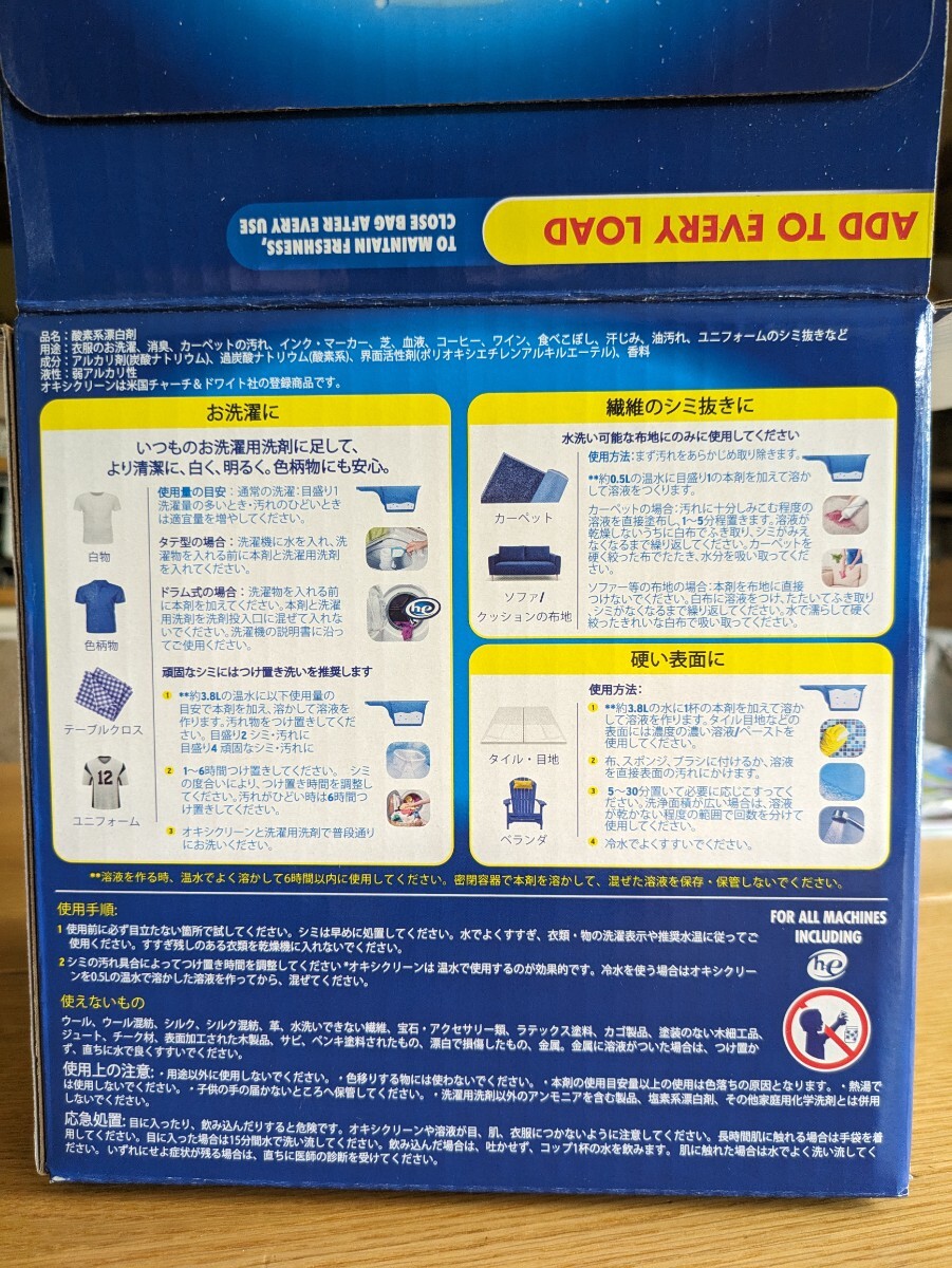 『オキシクリーン』の正体は、酸素系の粉末漂白剤です。