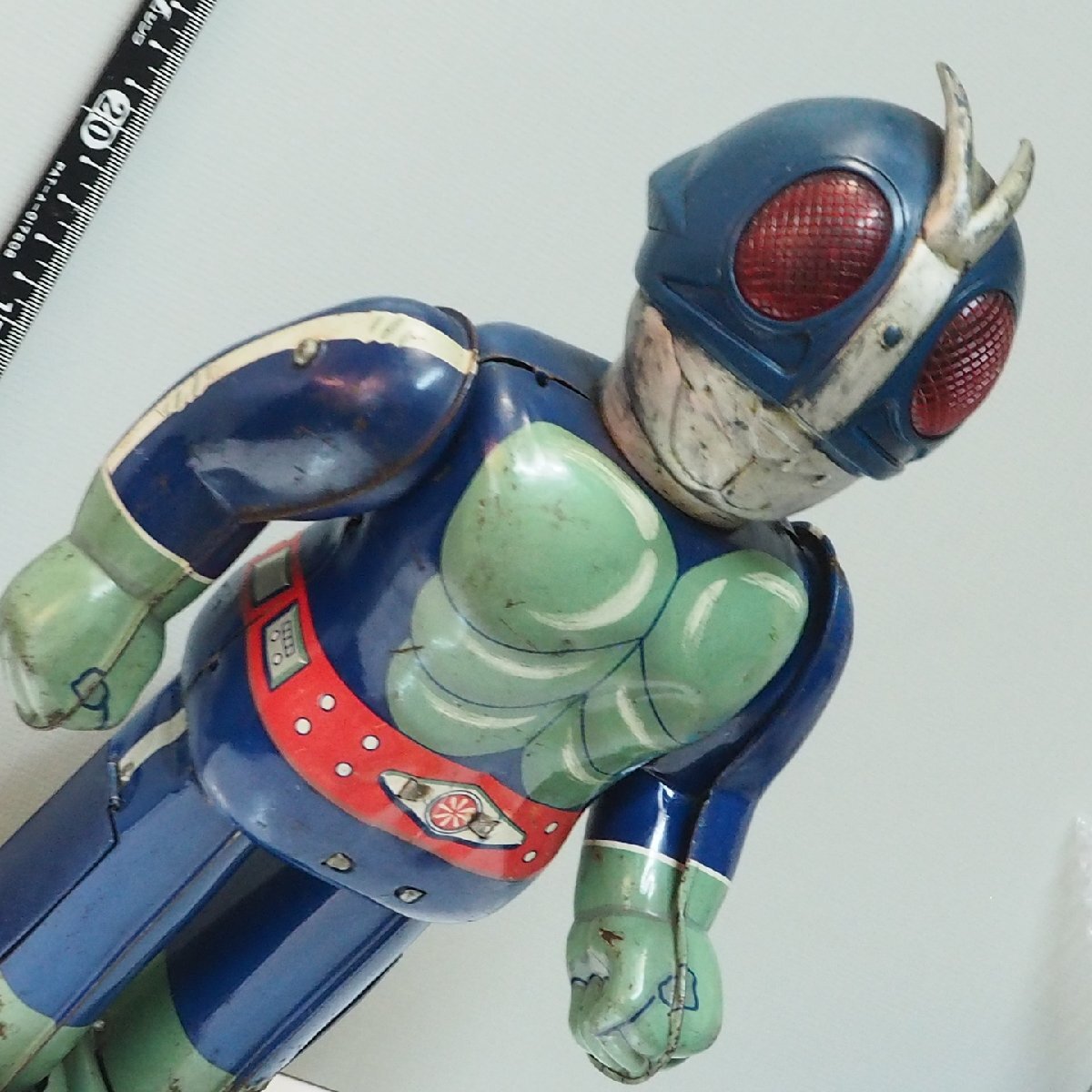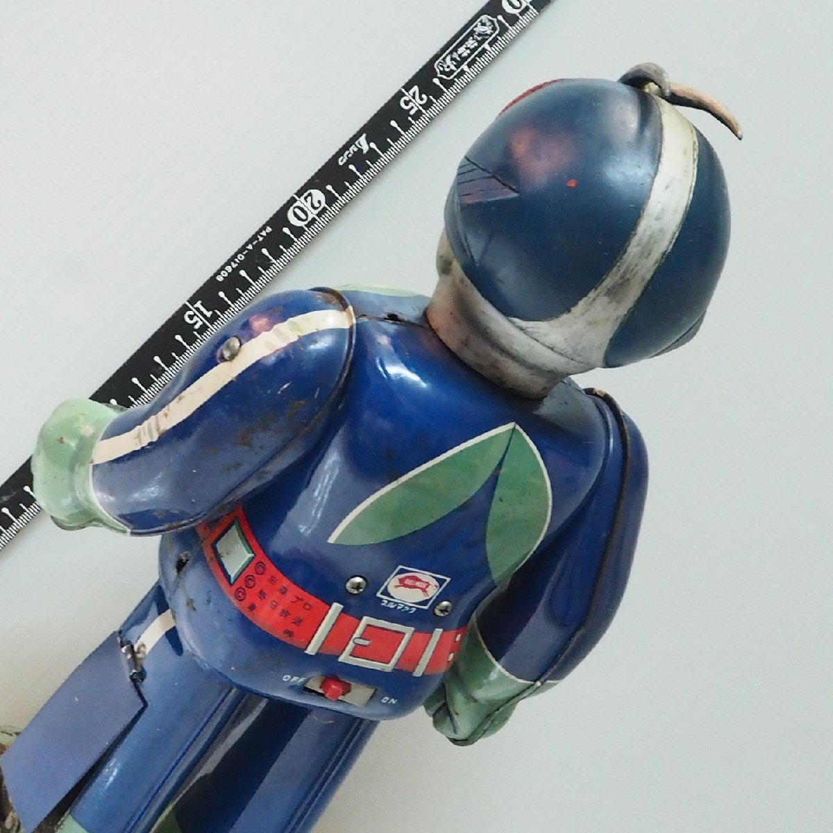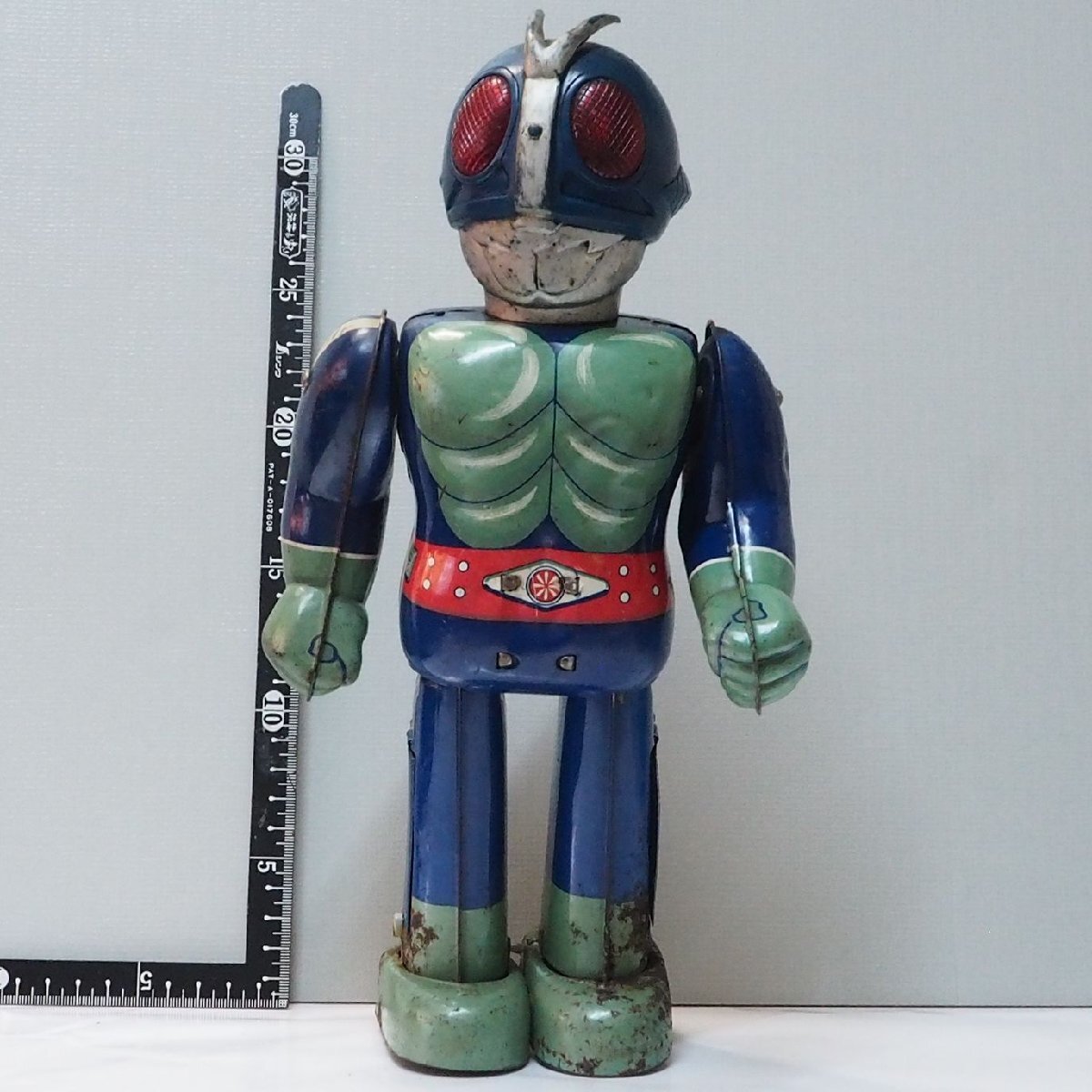 ブルマァク【仮面ライダー 2号 電動歩行 錆有 電池蓋リメイク 動作不良】当時物ブリキ製ロボット TIN TOY ROBOT■BULLMARK【ジャンク】0592