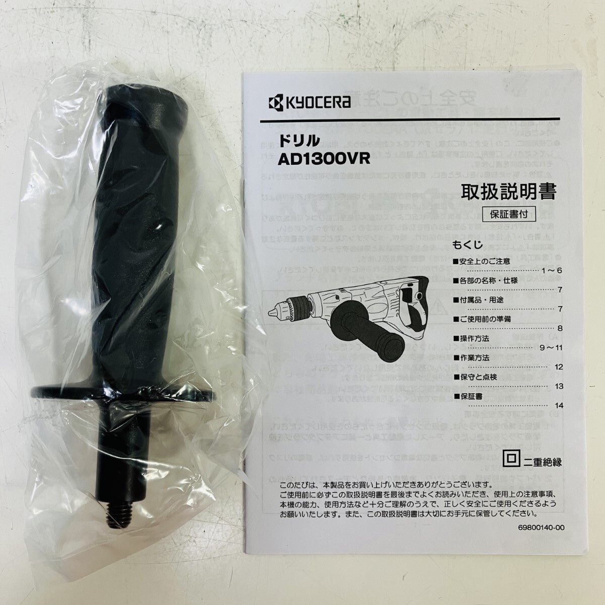 ЗЗ KYOCERA キョウセラ 100v 電動ドリル 補助ハンドル チャックハンドル 箱 取説付 AD1300VR グレー 未使用に近い