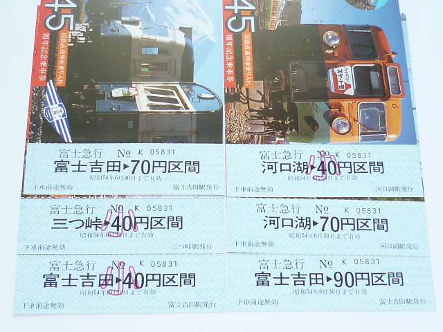 記念切符★富士急行線へ国鉄直通列車乗り入れ 運転開始45周年 記念乗車券★富士急行★昭和54年6月★6枚★05831