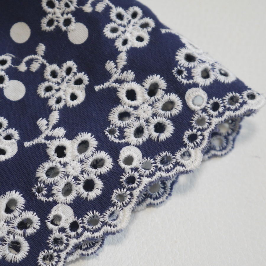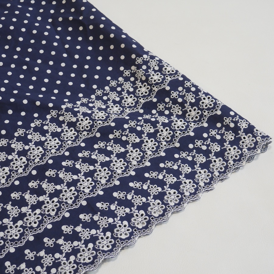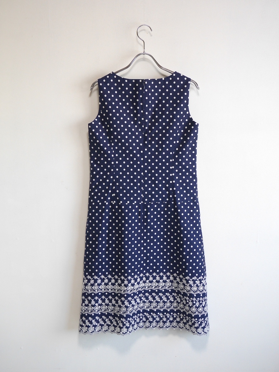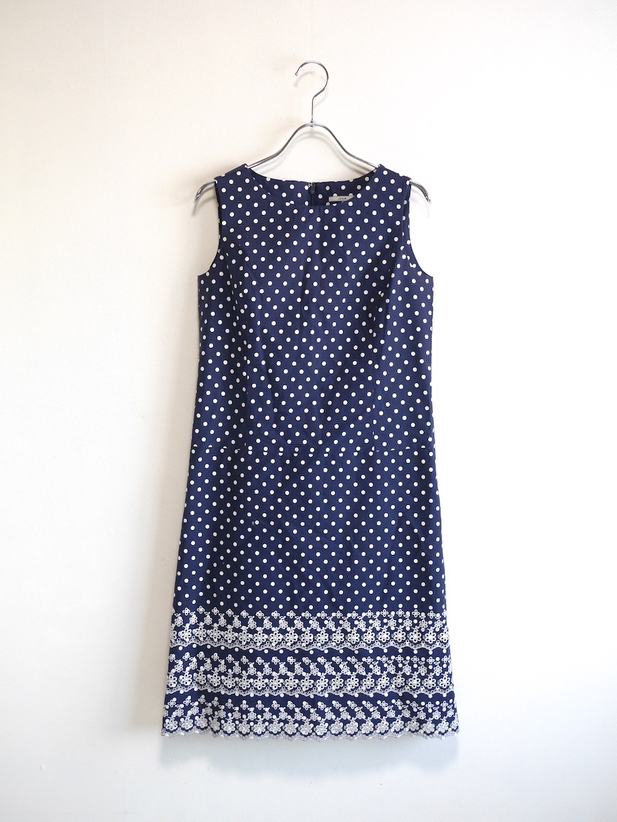 ドット×刺繍レースが可愛いIENAのワンピース。 裾はスカラップになっています。