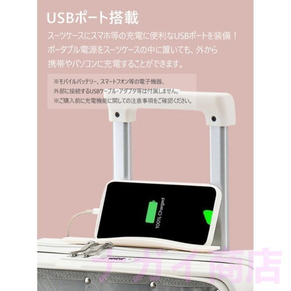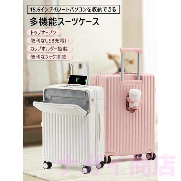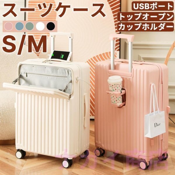 スーツケース Mサイズ 機内持ち込み カップホルダー 充電 USBポート フック搭載 キャリーケース キャリーバッグ ビジネス 旅行 出張
