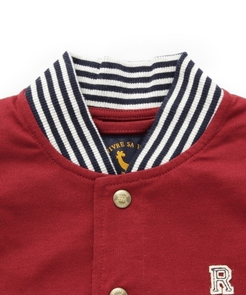 天竺素材でお作りしたスタジャン風デザインのカーディガン。