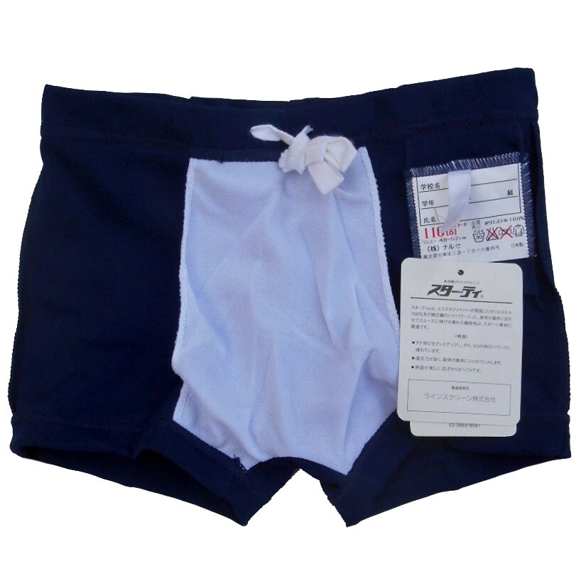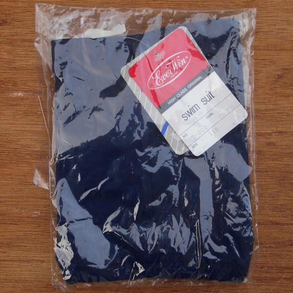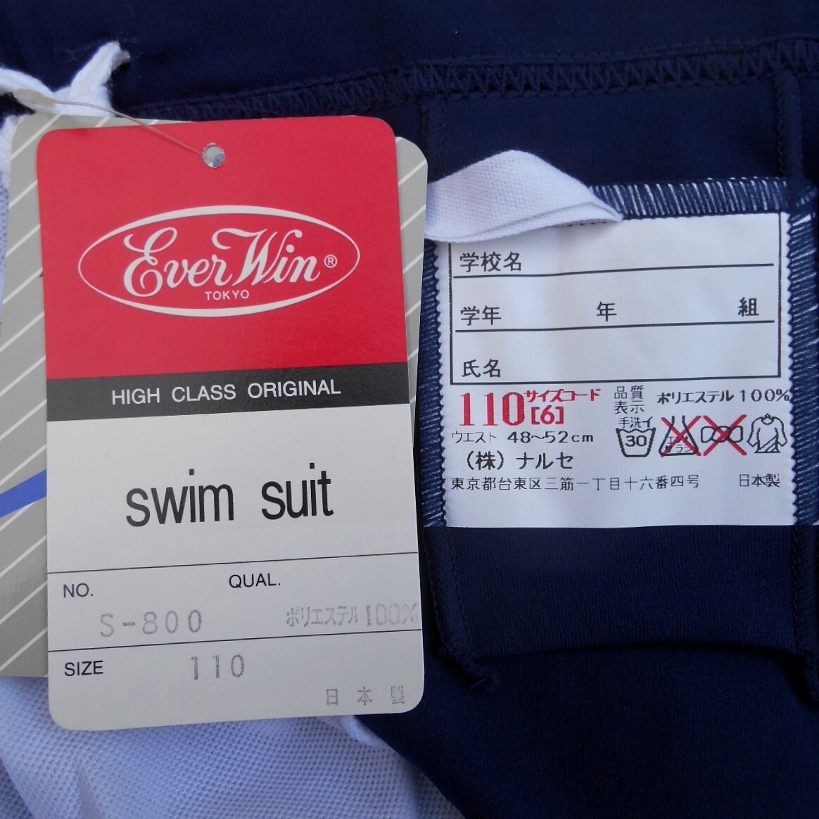 未使用 80s Ever Win スクール水着 110 紺 ネイビー 男子 エステルストレッチ 海パン 海水パンツ 水泳着 デッドストック 昭和 スイムウエア