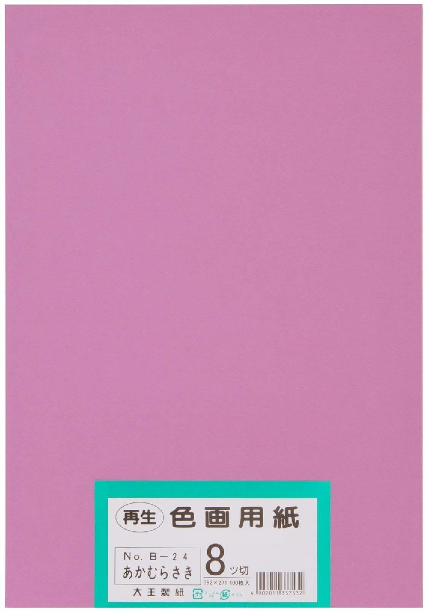 「大王製紙 画用紙 再生 色画用紙 八ツ切サイズ 100枚入 あかむらさき(赤紫)」▼4902011337532▼(商品説明)紫色系・あかむらさき 2SYB248100・・Color:あかむらさきStyle:紫色系PatternName:単品・【サイズ】 八ツ切サイズ:392mmx271mm・【環境配慮】 古紙パルプを配合した、環境にも配慮した商品です・【枚数】 100枚 【色】 あかむらさき・【紙厚・米坪】 約0.18mm(紙厚)・122.1g/m2(米坪)・【生産国】 日本製説明 大王製紙の高品質な色画用紙。豊富な色のラインナップで、様々な御利用シーンで活用できます。 古紙パルプを配合した環境配慮型商品です。(古紙は中層に配合しており、表層・裏層はバージンパルプ100%です) また、優れた筆記適正で油性マジックのにじみや裏写りがしにくい仕様となっています。 主な用途 【教材用】 画材/切り紙細工/切り文字/ポスター/版画/校内展示など 【一般用】 書籍見返し/書籍カバー/しおり/メニュー/値札/POPなど