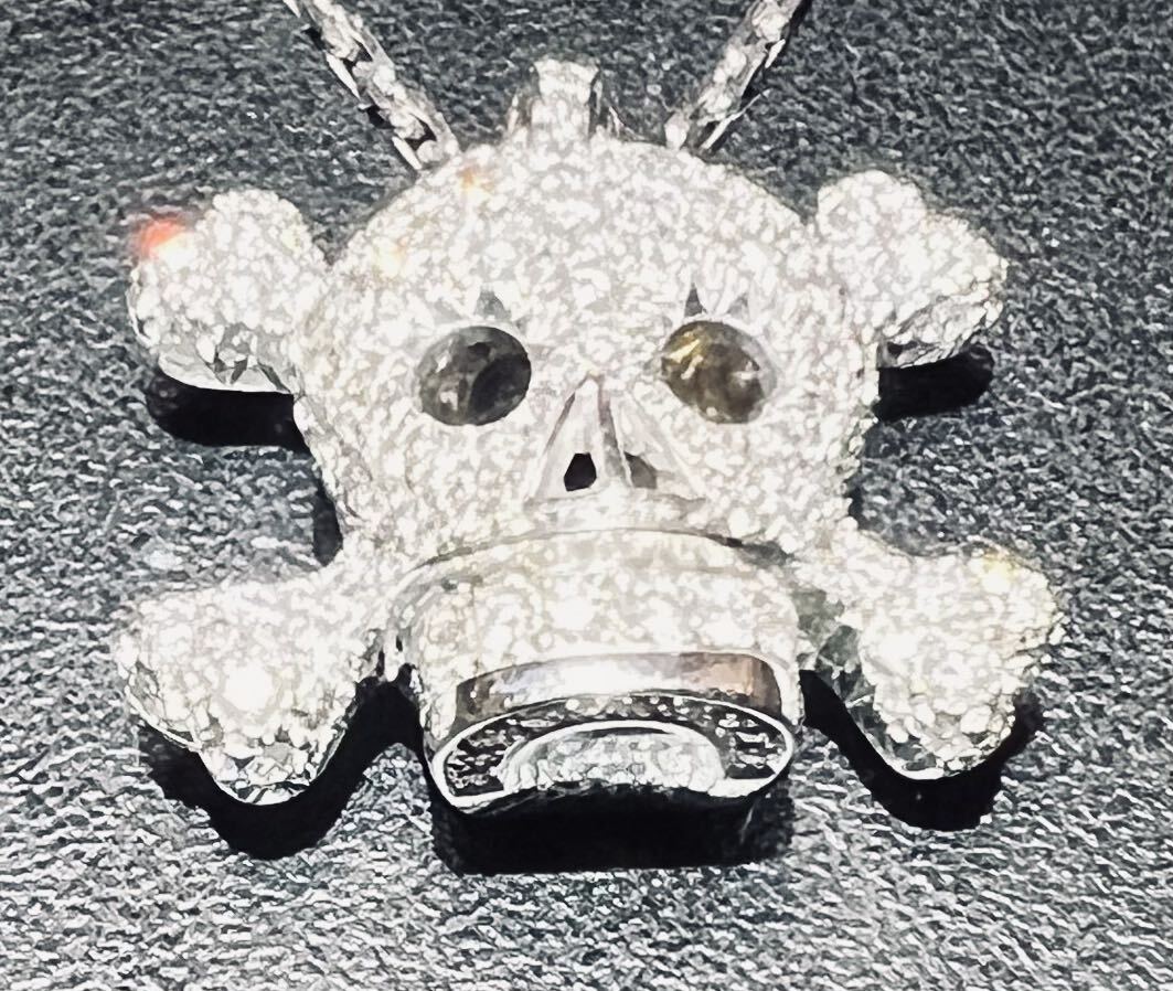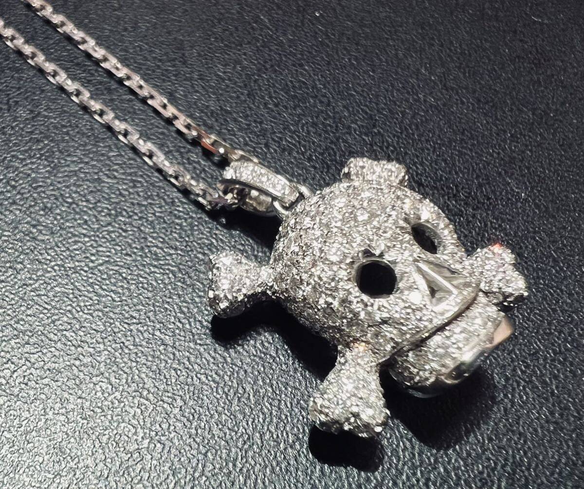 こちらのフルダイヤのタイプは定価が228万円で販売されていたと記憶しています。 ちなみに、フルダイヤでないプレーンなK18WGのスカルのタイプの定価は367,500円だったと記憶しています。