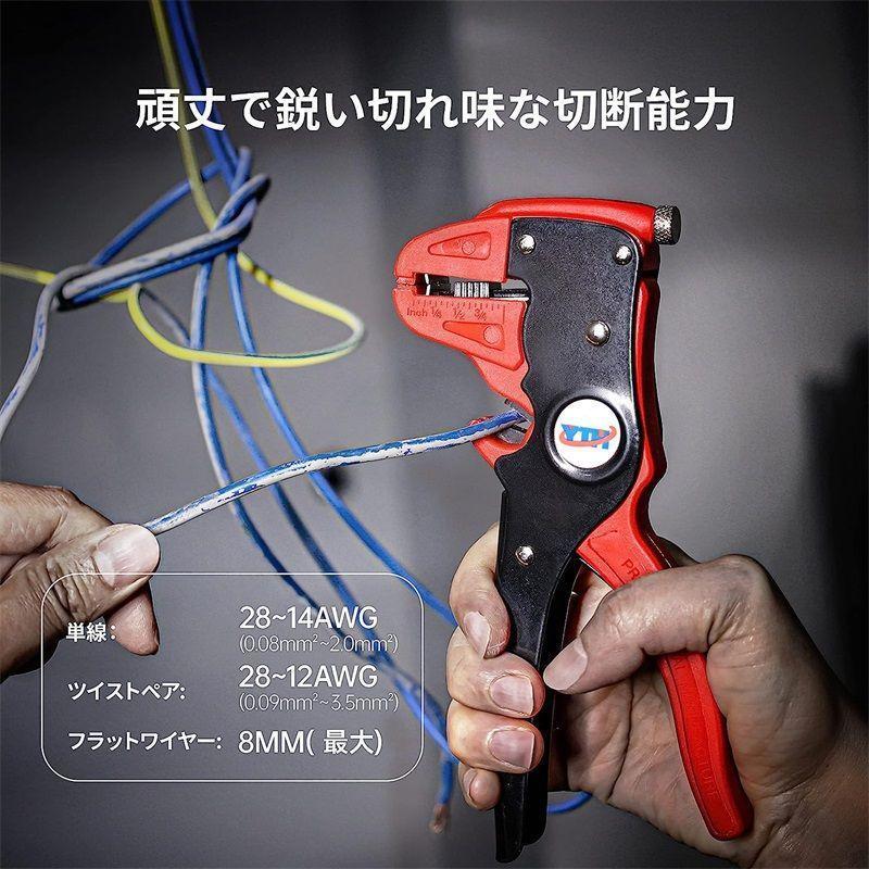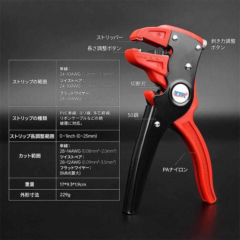 自動ワイヤーストリッパー 24-10AWG ケーブルカッター ワイヤー切断 電線径調節可能