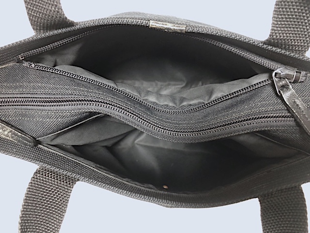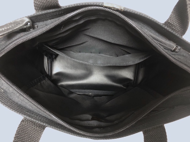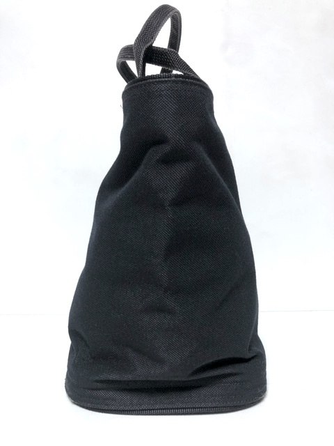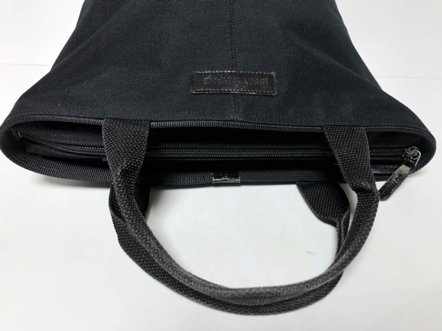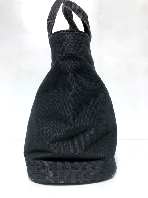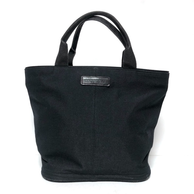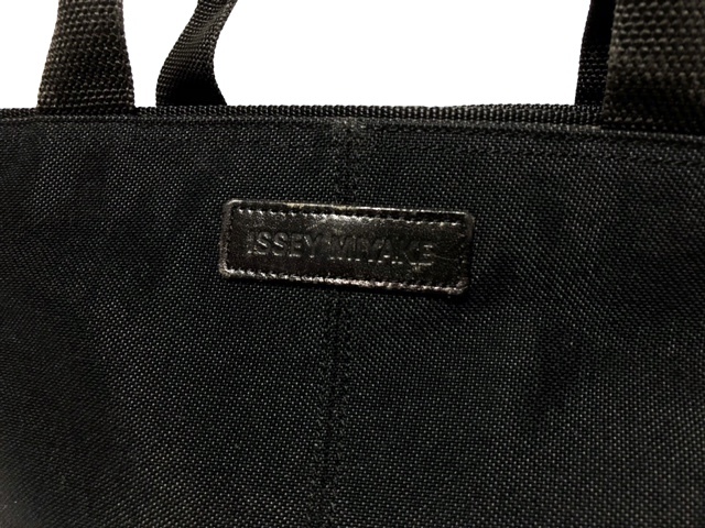 二点落札で送料無料! I048 ISSEY MIYAKE イッセイミヤケ 自立式 ミニバッグ ポーチ キャンバス レザーロゴパッチ ブラック 黒
