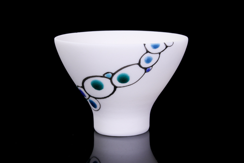 見所 長年自身の研究対象であった「細胞と生命力」をテーマに作品を制作する異色の九谷焼作家・今西泰赳氏。躍動感のある造形で表現された生命の力強いエネルギーと、艷やかで美しい色彩で描かれた細胞文に魅了されます。九谷焼の技法に、研究者時代の経験を活かした科学的アプローチが加わった作品は、唯一無二の世界観を放っています。