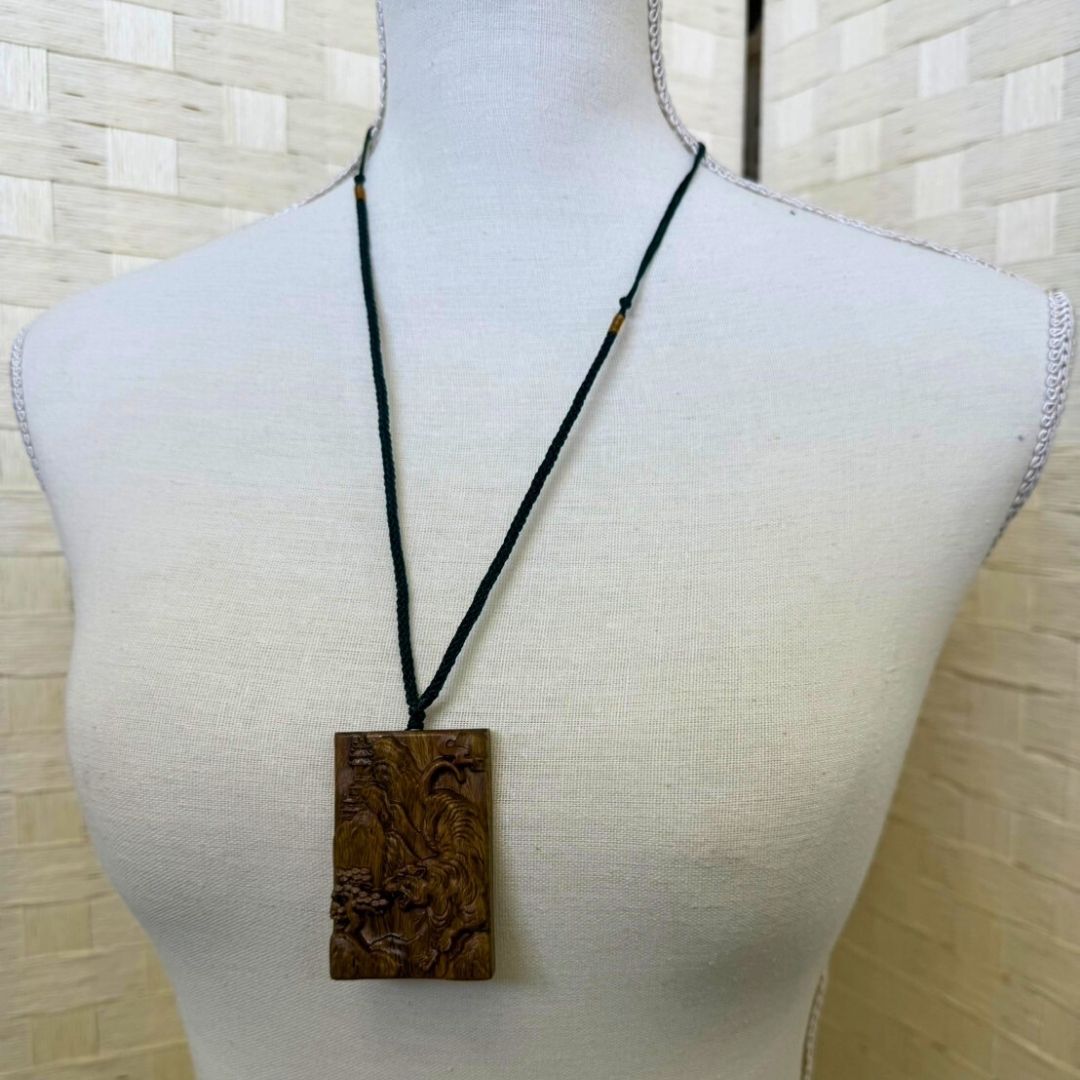【2種類から選択】【※購入後メッセージ下さい】ネックレス 木製 板版 彫刻ネックレス 龍or虎 首飾り 首輪 アクセサリー お守り 厄除け