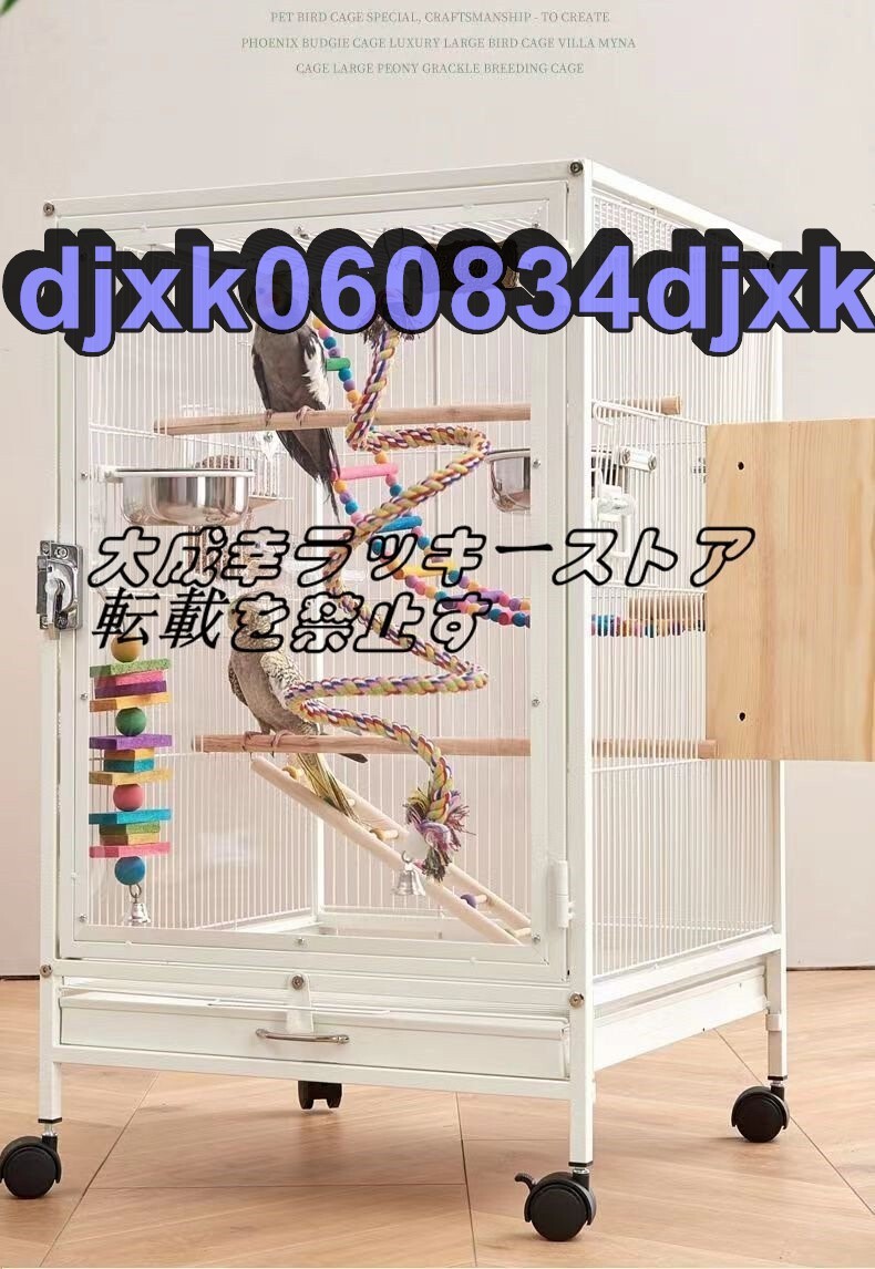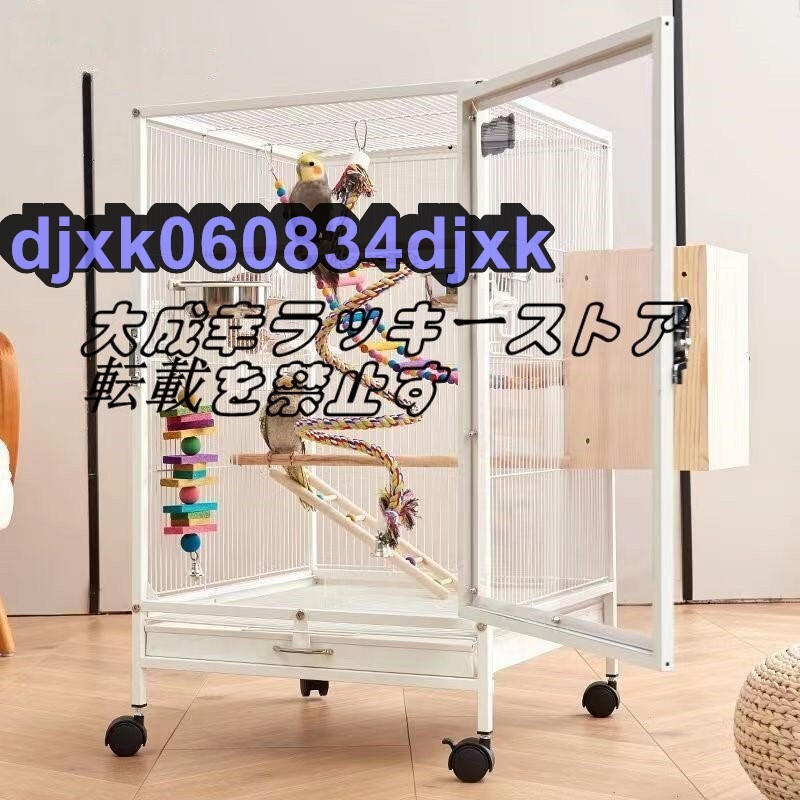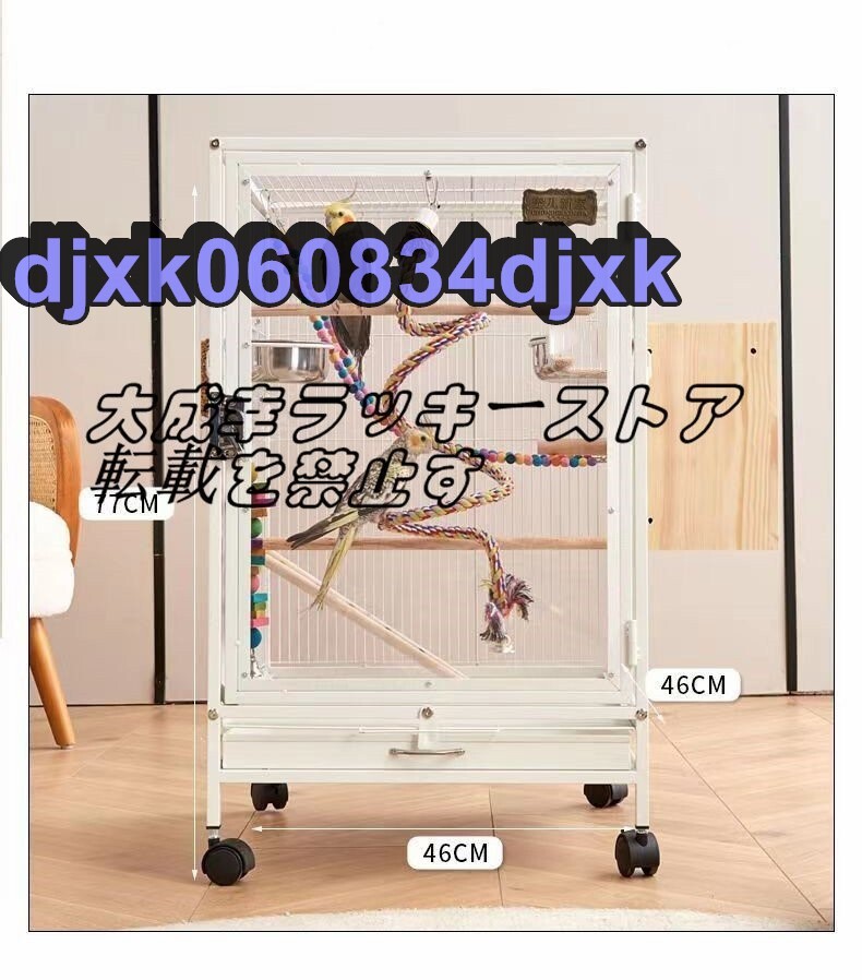 状態:新品未使用 重量:7kg ●サイズ:46*46*77(cm) セキセイインコ、コザクラインコ、オカメインコなど人気のインコをはじめ、オウム、文鳥、小鳥と多数の鳥を飼育する方にオススメです! 手入れに配慮した大きなドアと広々とした空間となっているので、設置や掃除もしやすい設計です! 全てのドアに脱走防止が付いていて、大きく開く扉が使いやすいです! 真ん中に別途、金網などを取り付ければ上下に仕切りでき、取り外しができるので便利です! 底部は底網と引き出し式のトレーになっているので掃除も簡単です!
