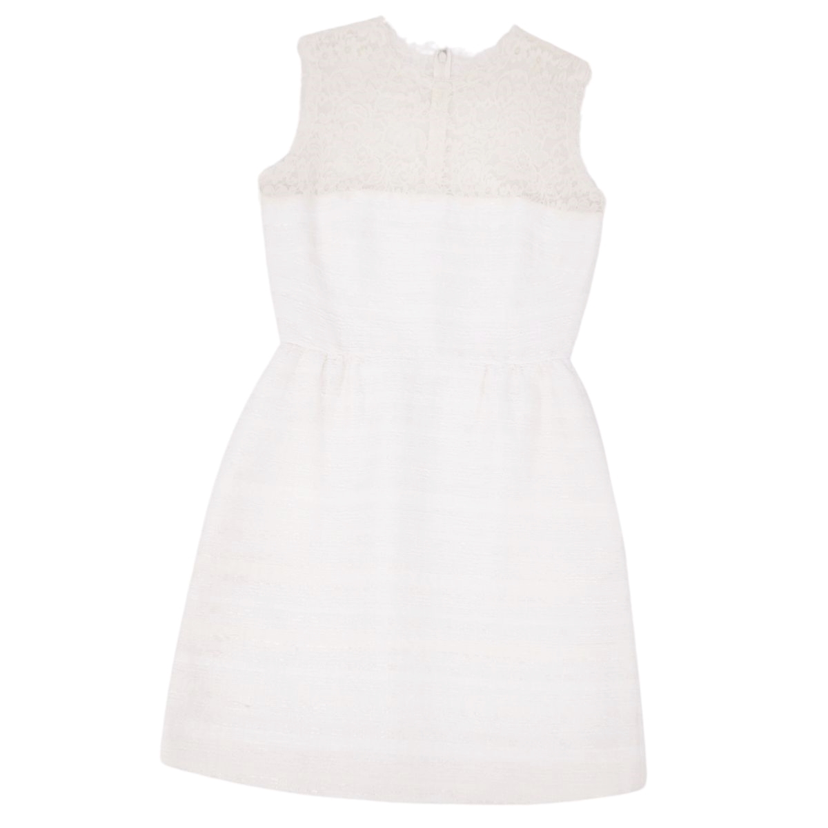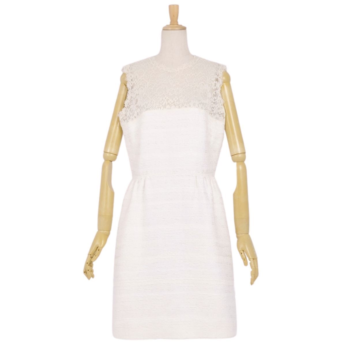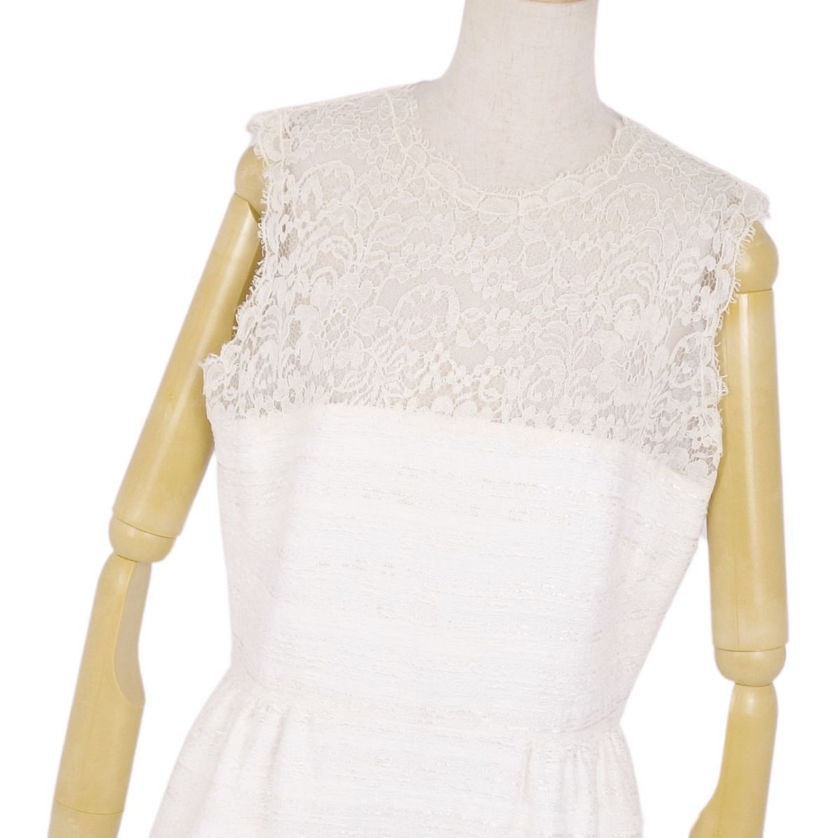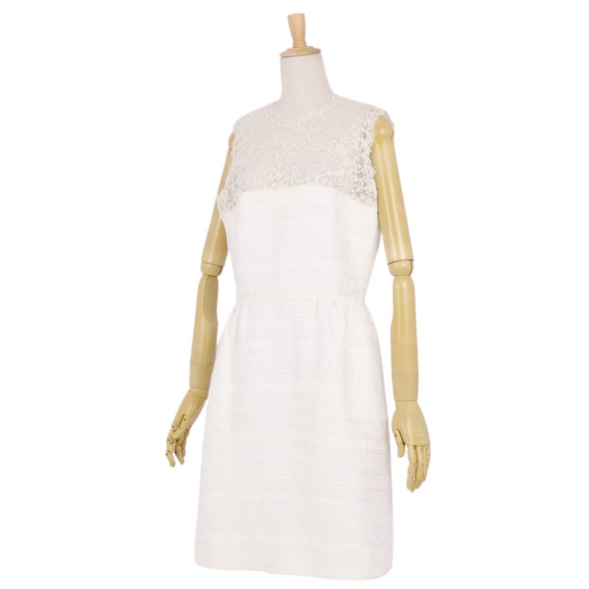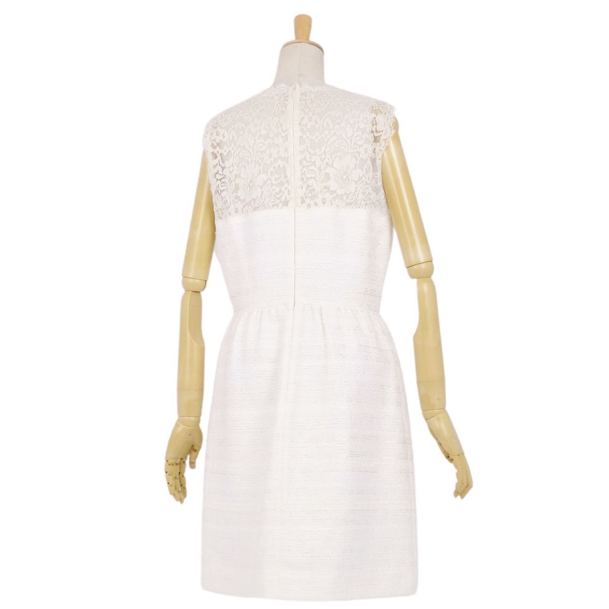 美品 ヴァレンティノ VALENTINO ワンピース ノースリーブ レース ミックスツイード トップス レディース 42 ホワイト |