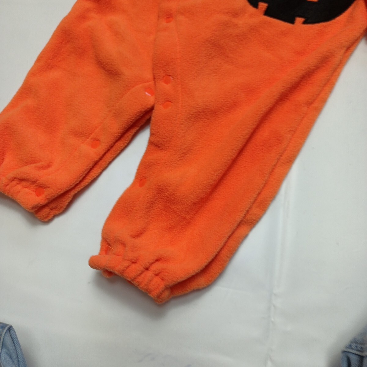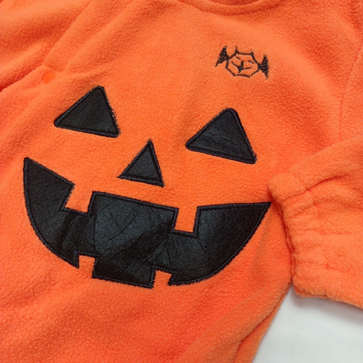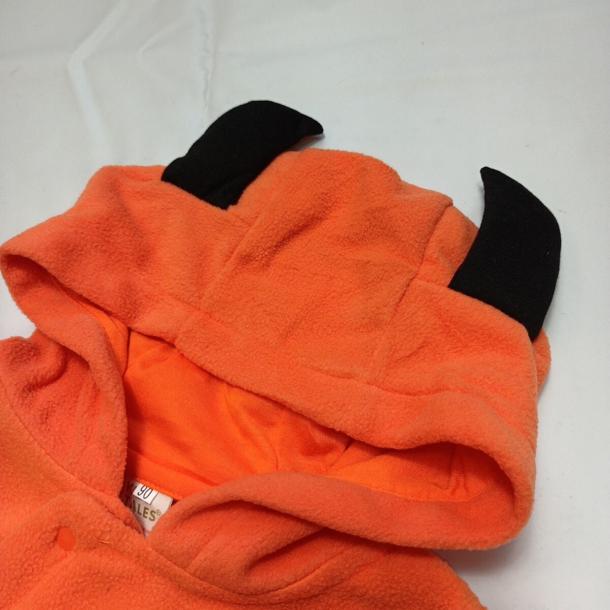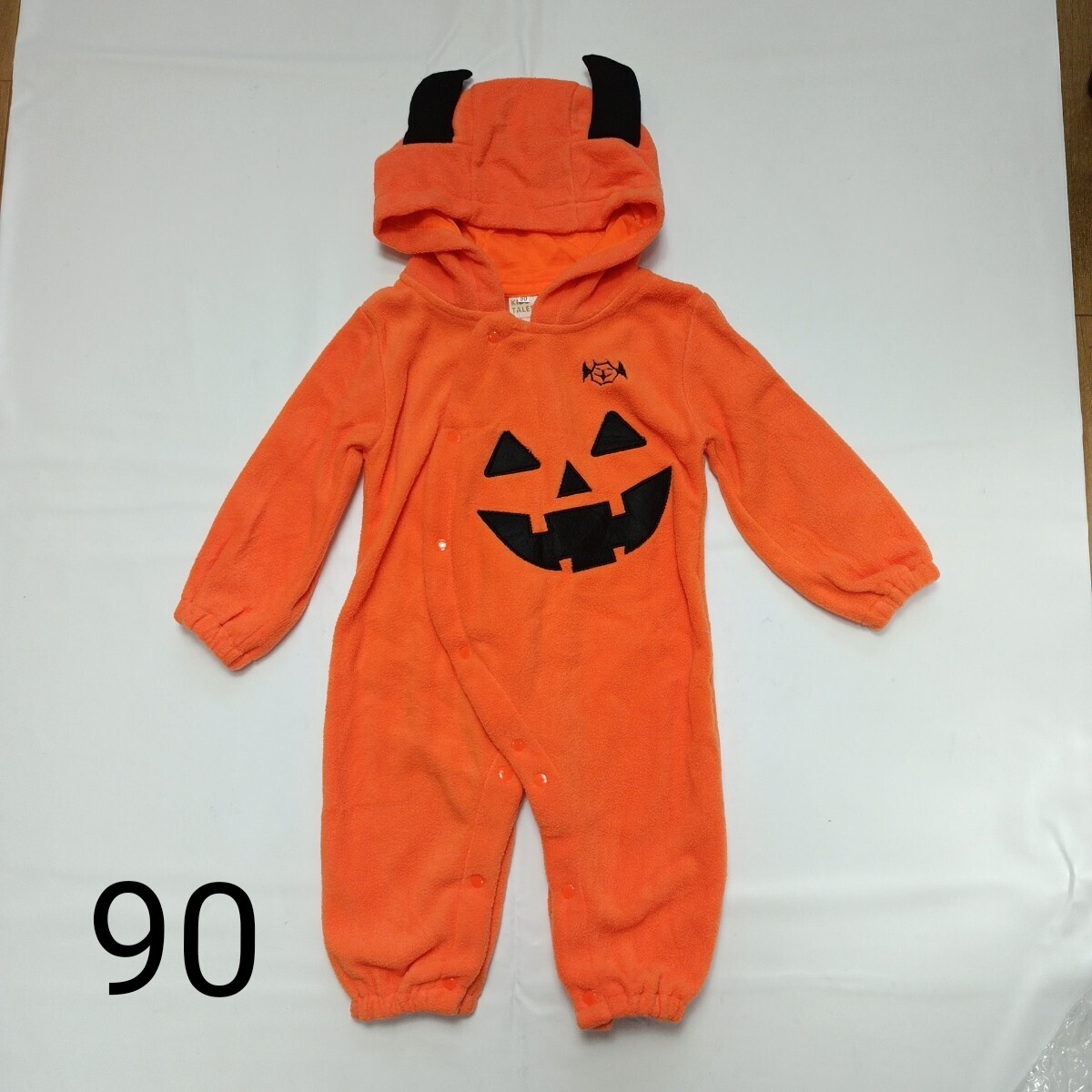 【未使用】90 ベビー 赤ちゃん 長袖 カバーオール ロンパース カボチャ かぼちゃ ハロウィン 衣装 羽 取り外し可 イベント ⑨