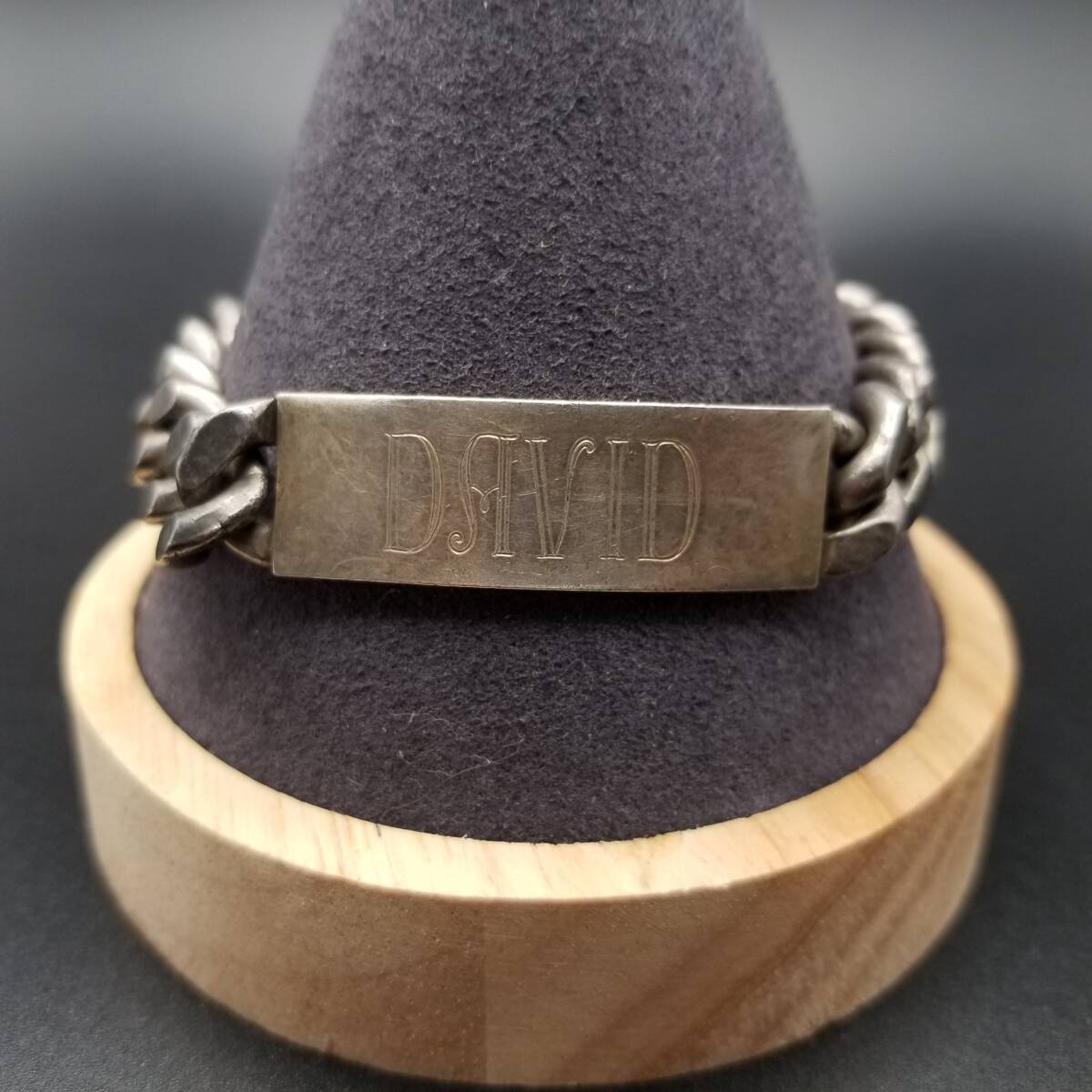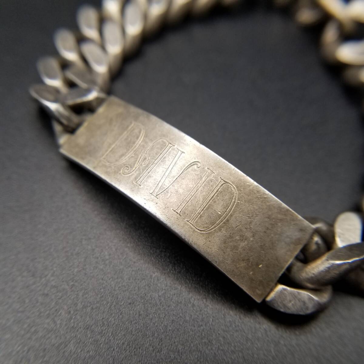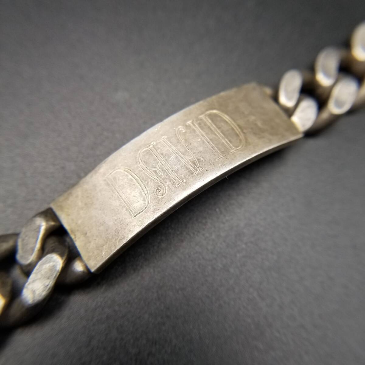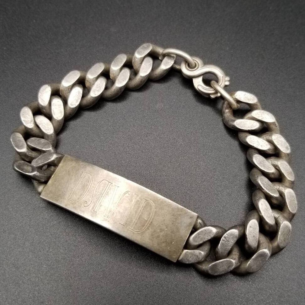 IDタグ 長方形プレート 喜平チェーン 925 シルバー ヴィンテージ ブレスレット 銀 ネーム彫金 DAVID 重厚感 ゴツめ HEAVY Y18-R