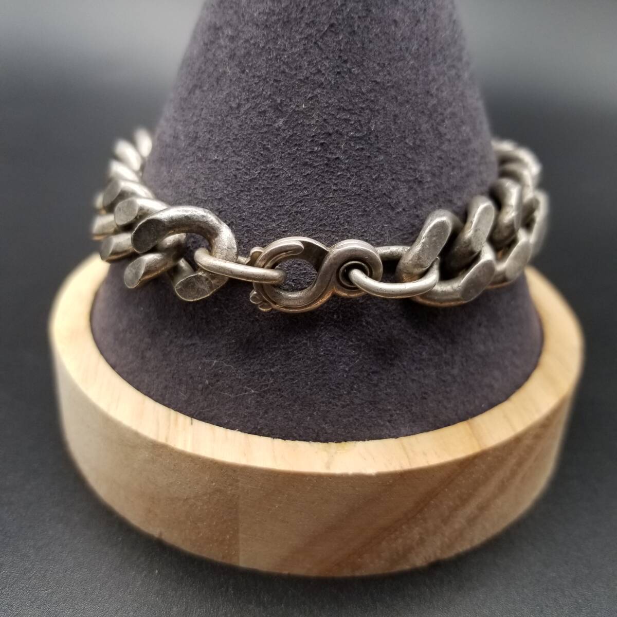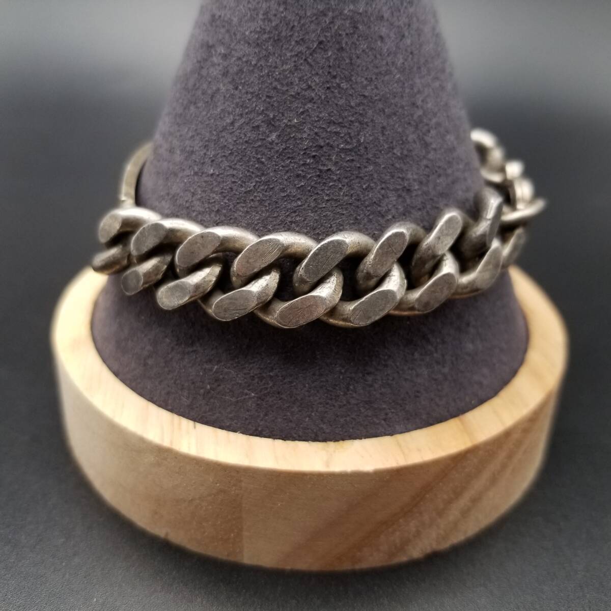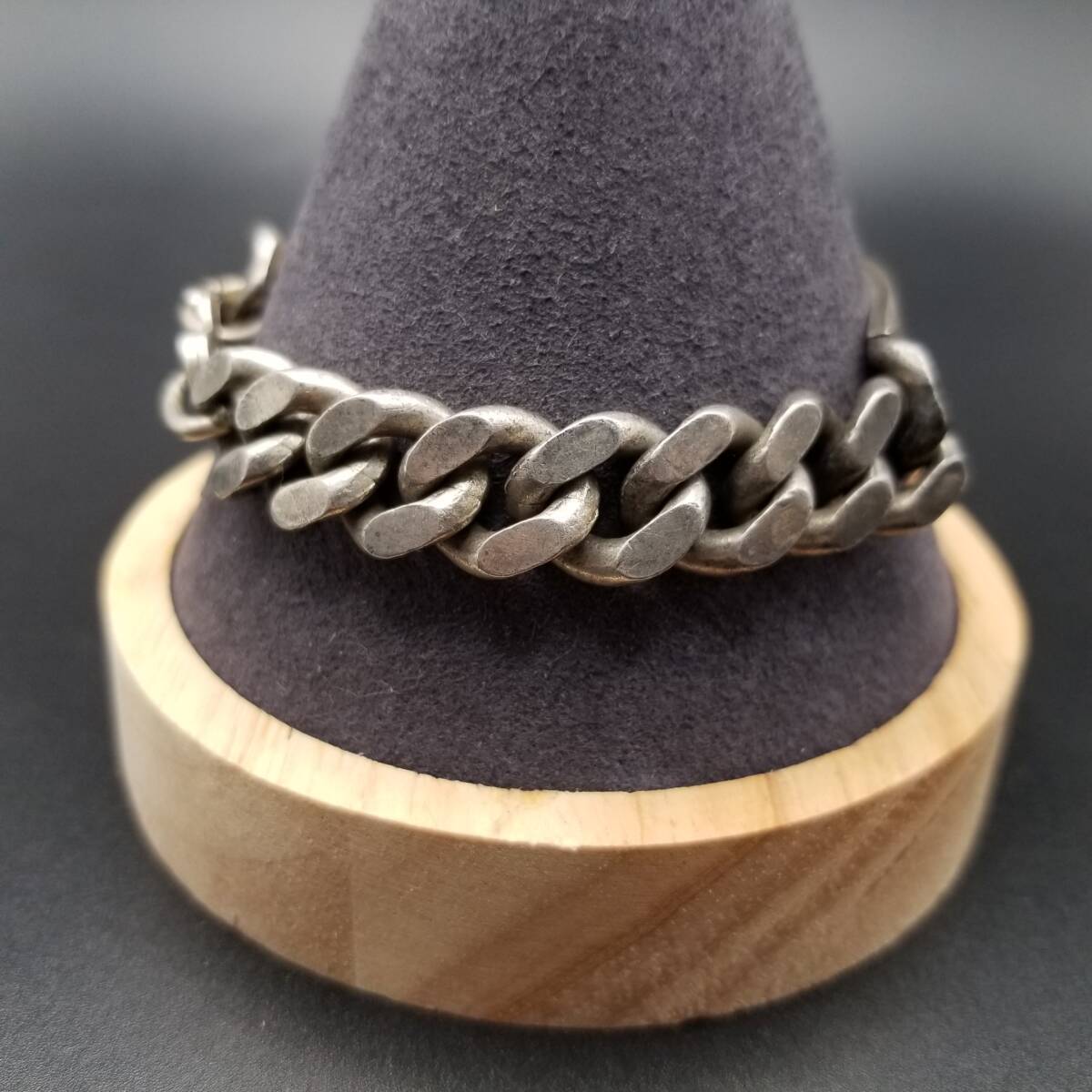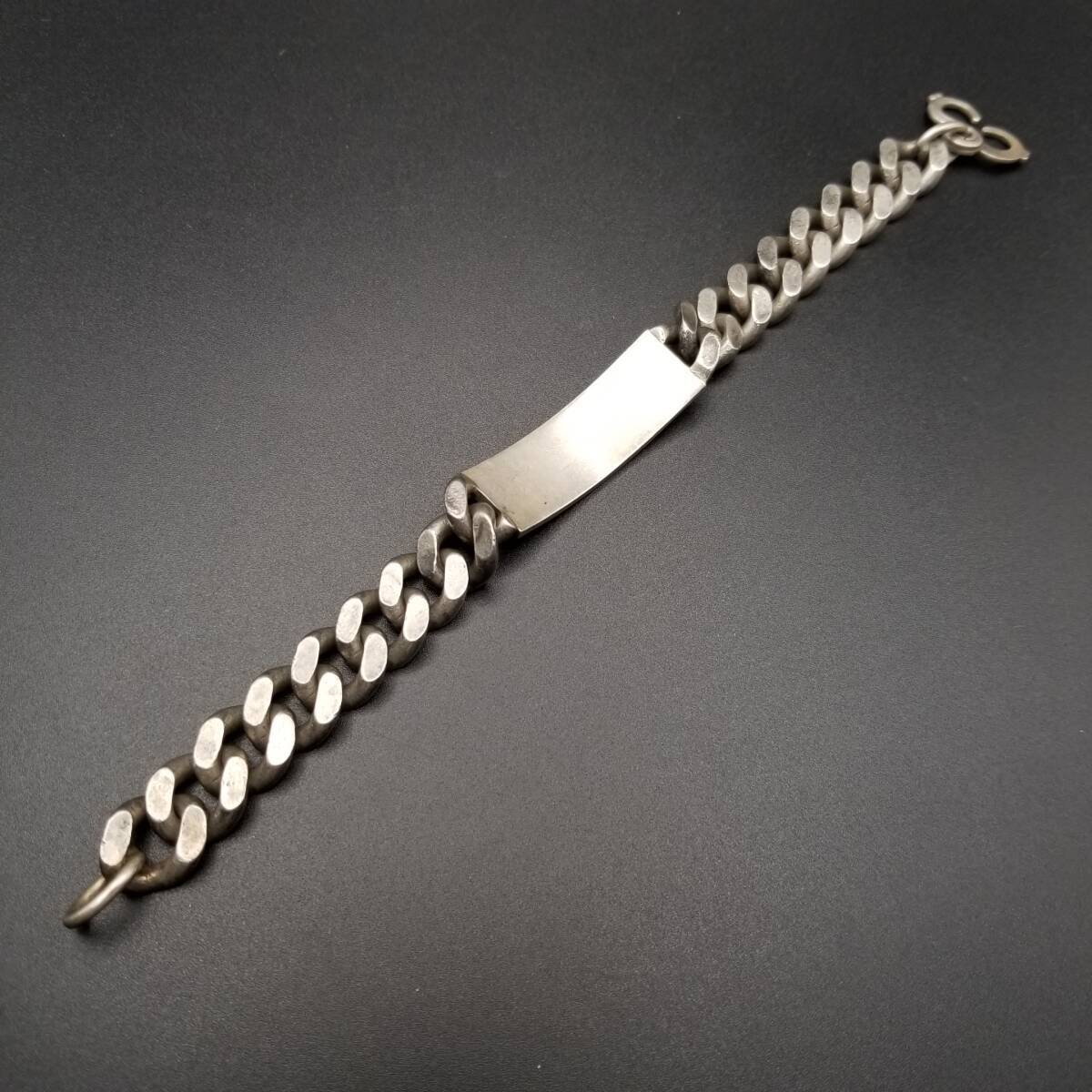 IDタグ 長方形プレート 喜平チェーン 925 シルバー ヴィンテージ ブレスレット 銀 ネーム彫金 DAVID 重厚感 ゴツめ HEAVY Y18-R