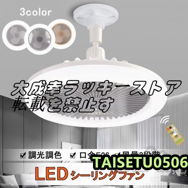 シーリングファンライト LED ファン付き照明 サーキュライト シーリングライト 口金E26対応 大風量 静音 調光調色 風量3段階 角度調節