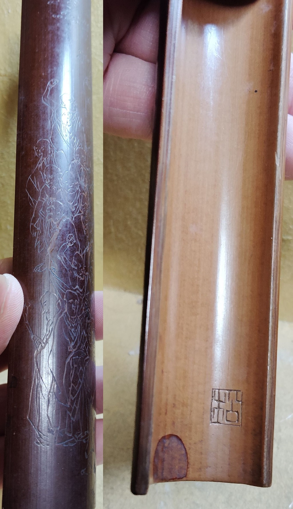 時代 羅漢彫 松銘 斑竹 煎茶 仙媒 茶則 茶合 茶量 検 煎茶器 煎茶道具