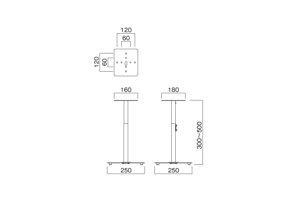 ●外形寸法:幅 250 × 奥行き 250 × 高さ 300~500 (mm)質量:約2kg (1台)