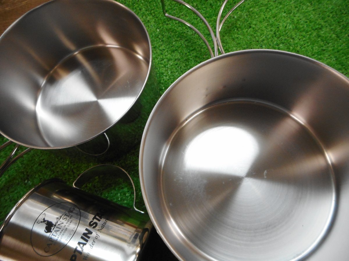・メーカー:キャプテンスタッグ ・モデル:キャンピングステンレス食器マグカップセット ・品番:M-8578 |