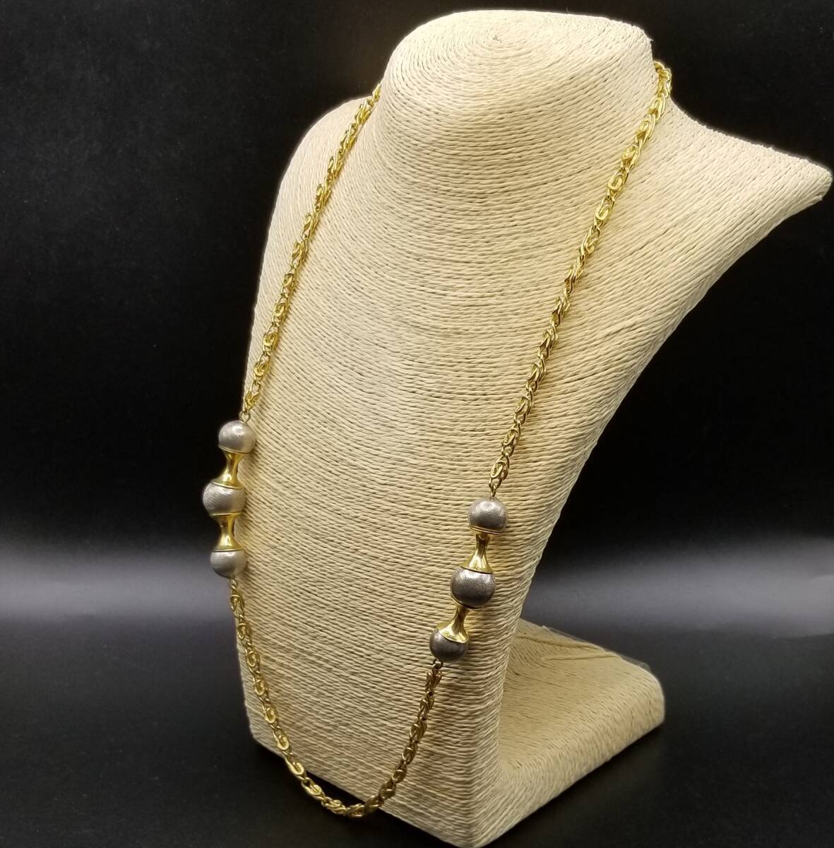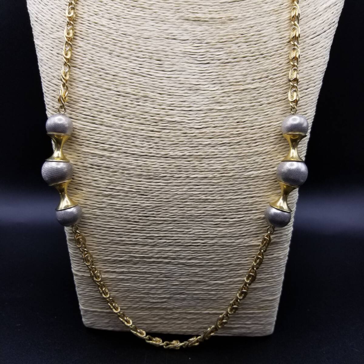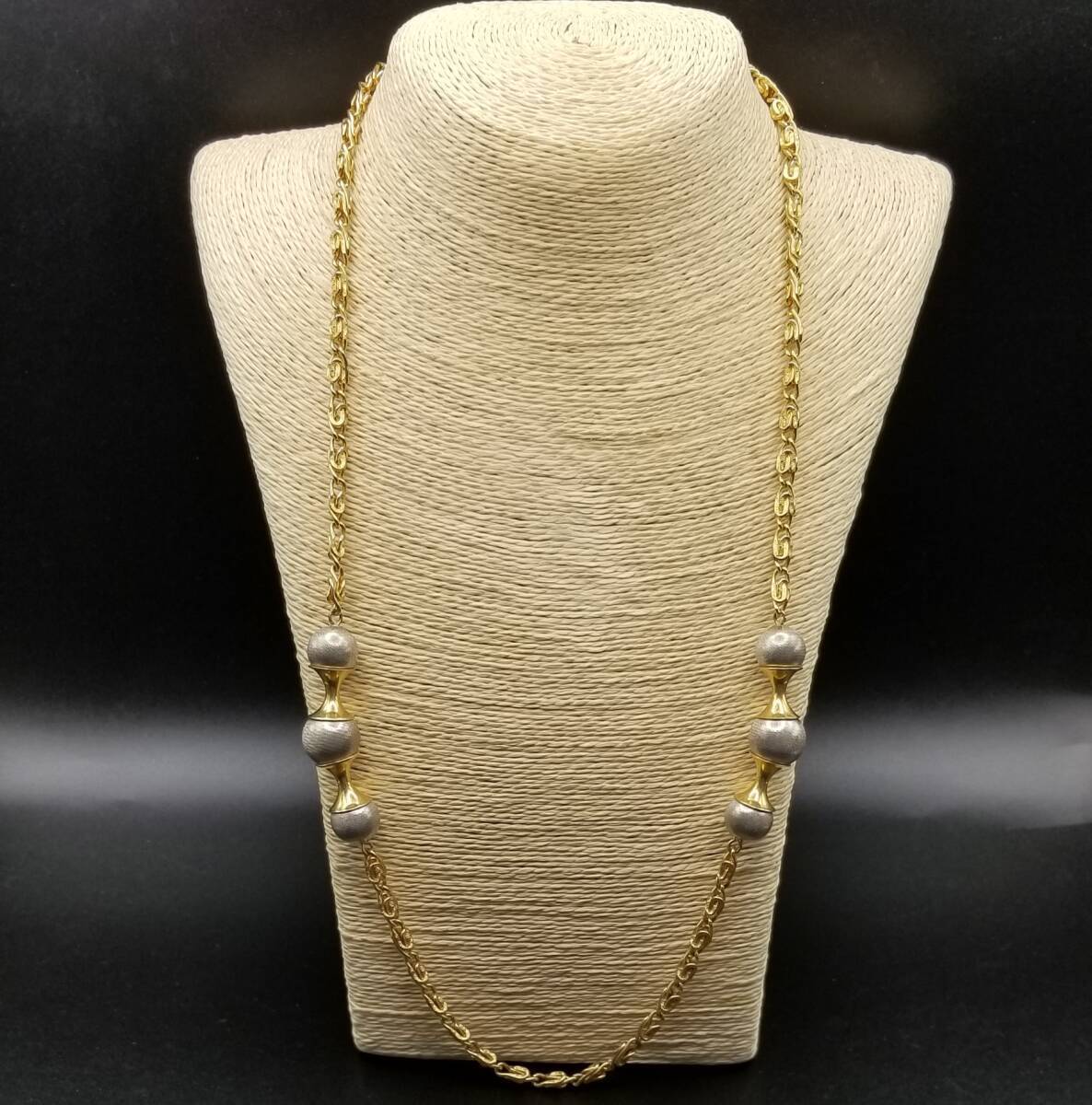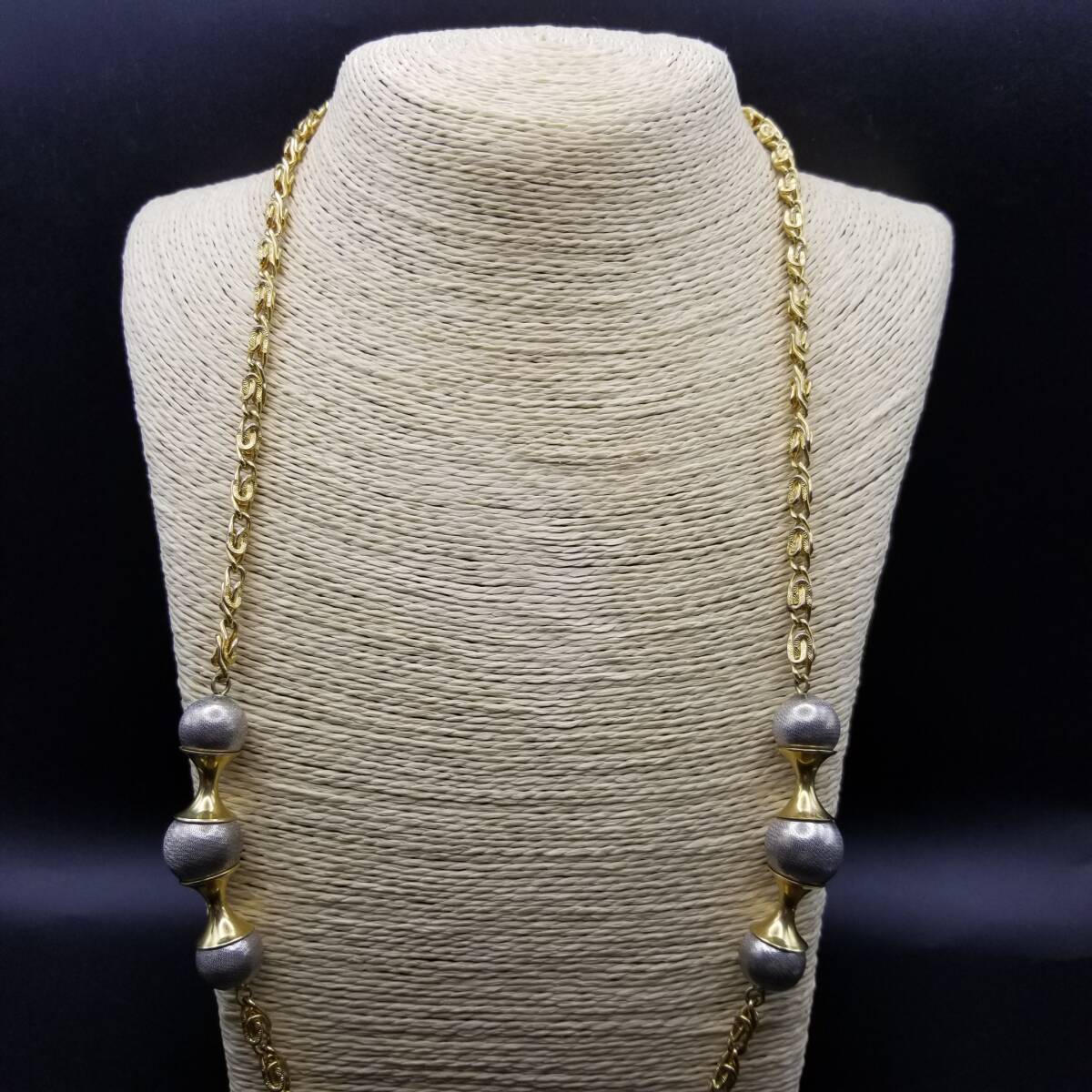 メタルボール ディテール クラシカル ヴィンテージ ネックレス ロングペンダント チェーン ゴールドトーン ファッションジュエリー Y14-N