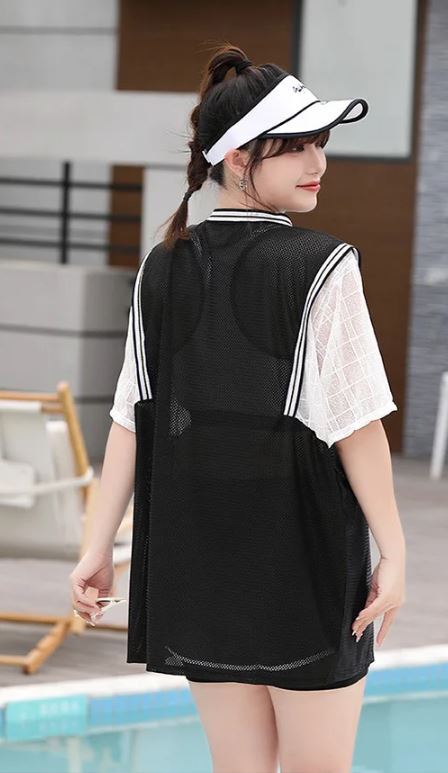 【7Lサイズ black3点セット】女性用タンキニ水着,3点セット,水着,ハイウエスト,水着,カバー付きビーチウェア,ラージサイズ