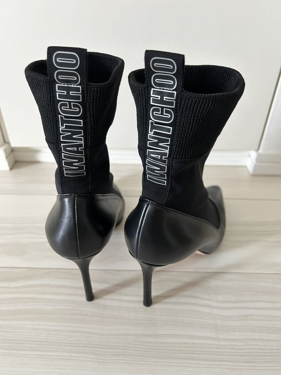 オールレザーではなく、ソックスブーツのようなデザインで、ダイバー素材?ウェットスーツのような素材も使われています。