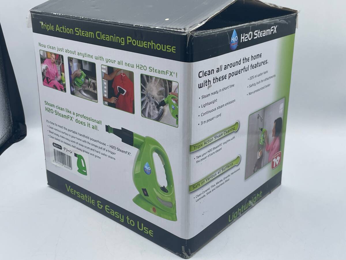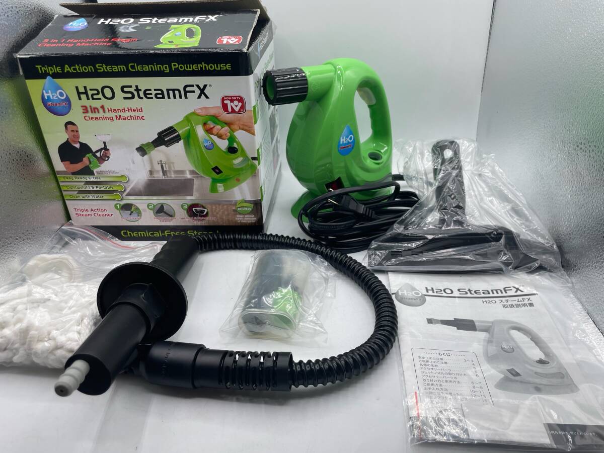N38108◆ 【動作確認済】H2O Steam FX KB-009A-GR ハンディー スチームクリーナー 225ml グリーン 家庭用 蒸気 三味生活