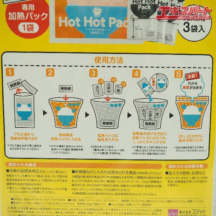 蒸気のチカラで! HOT HOT PACK 3個セット 災害 防災 アウトドア 登山 釣り キャンプ 加熱 缶詰 レトルト 戸塚店