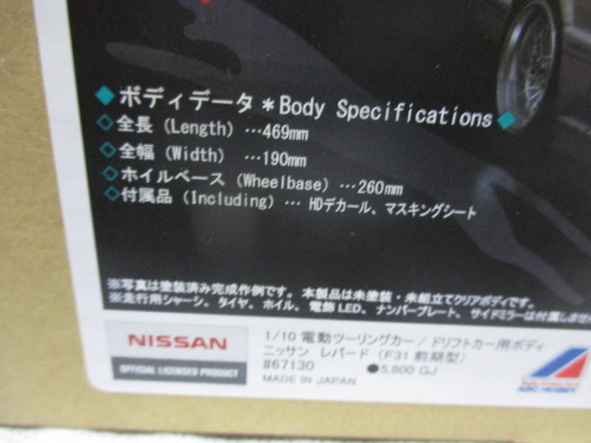 未使用品 ABC HOBBY #67130 ニッサン レパード(F31 後期型) 1/10RCボディ、になります。