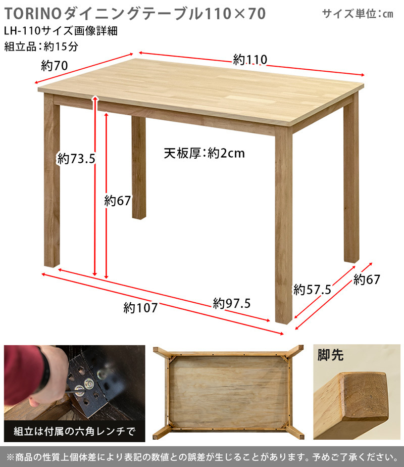 | サイズ | (W)幅110×(D)奥行70×(H)高さ73.5m 天板厚約20mm |