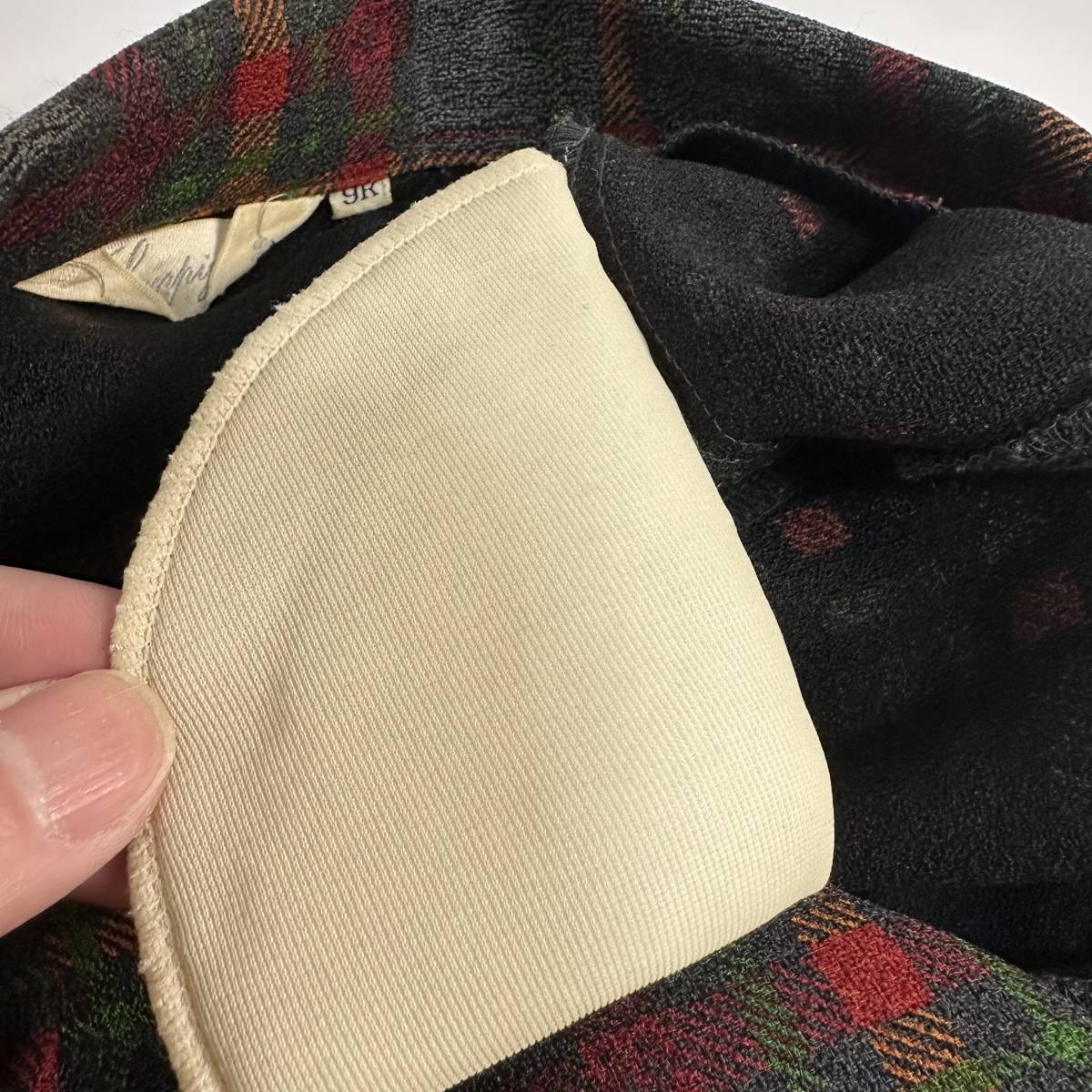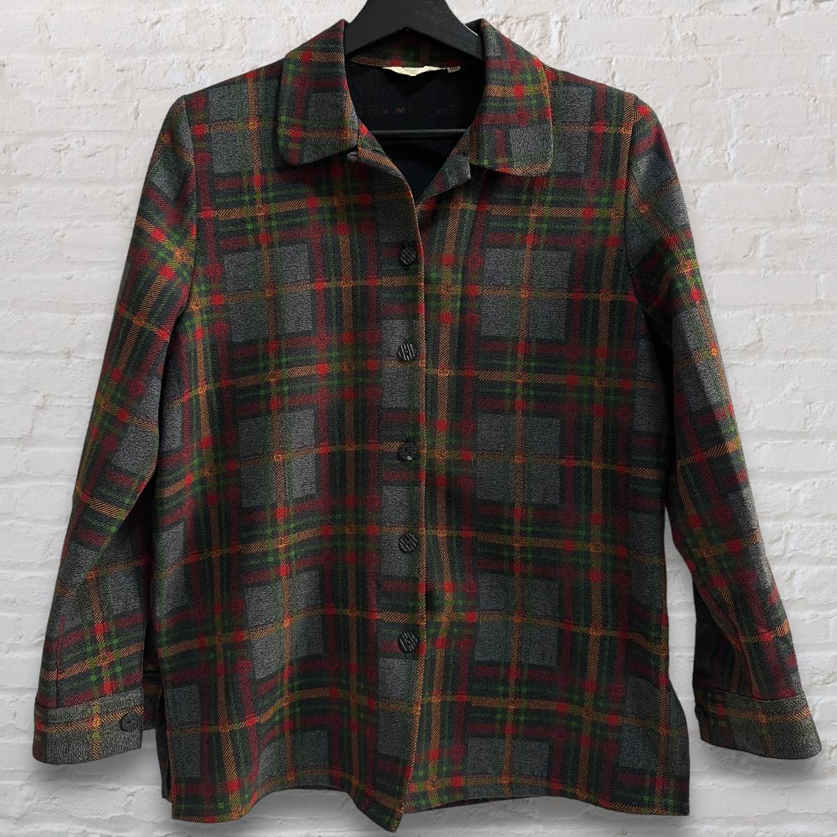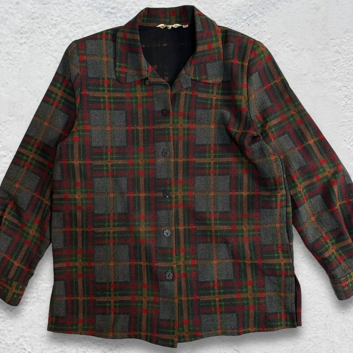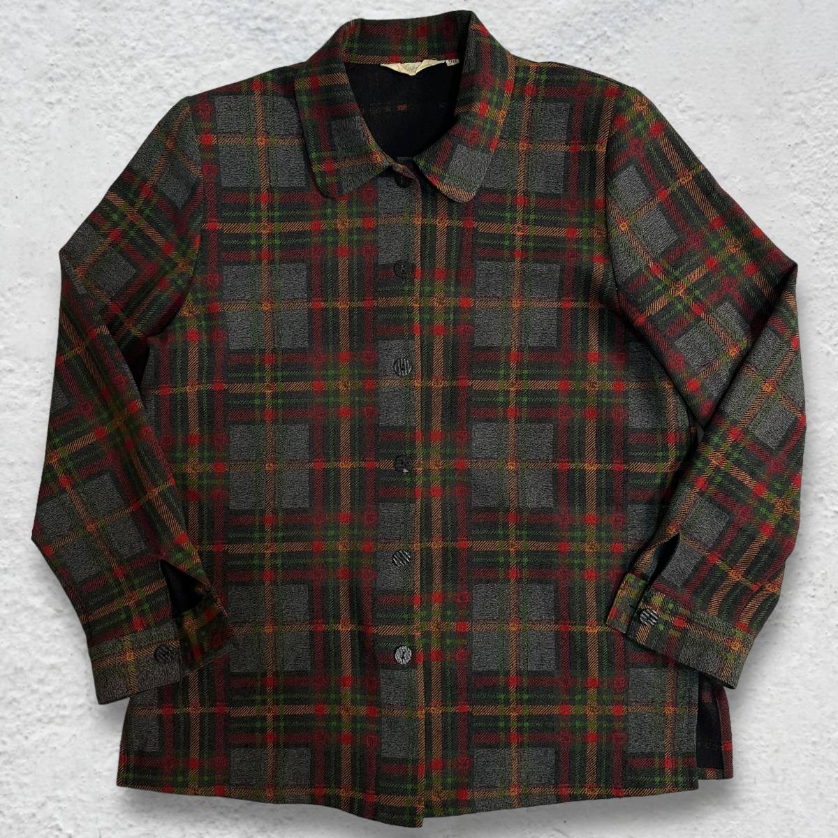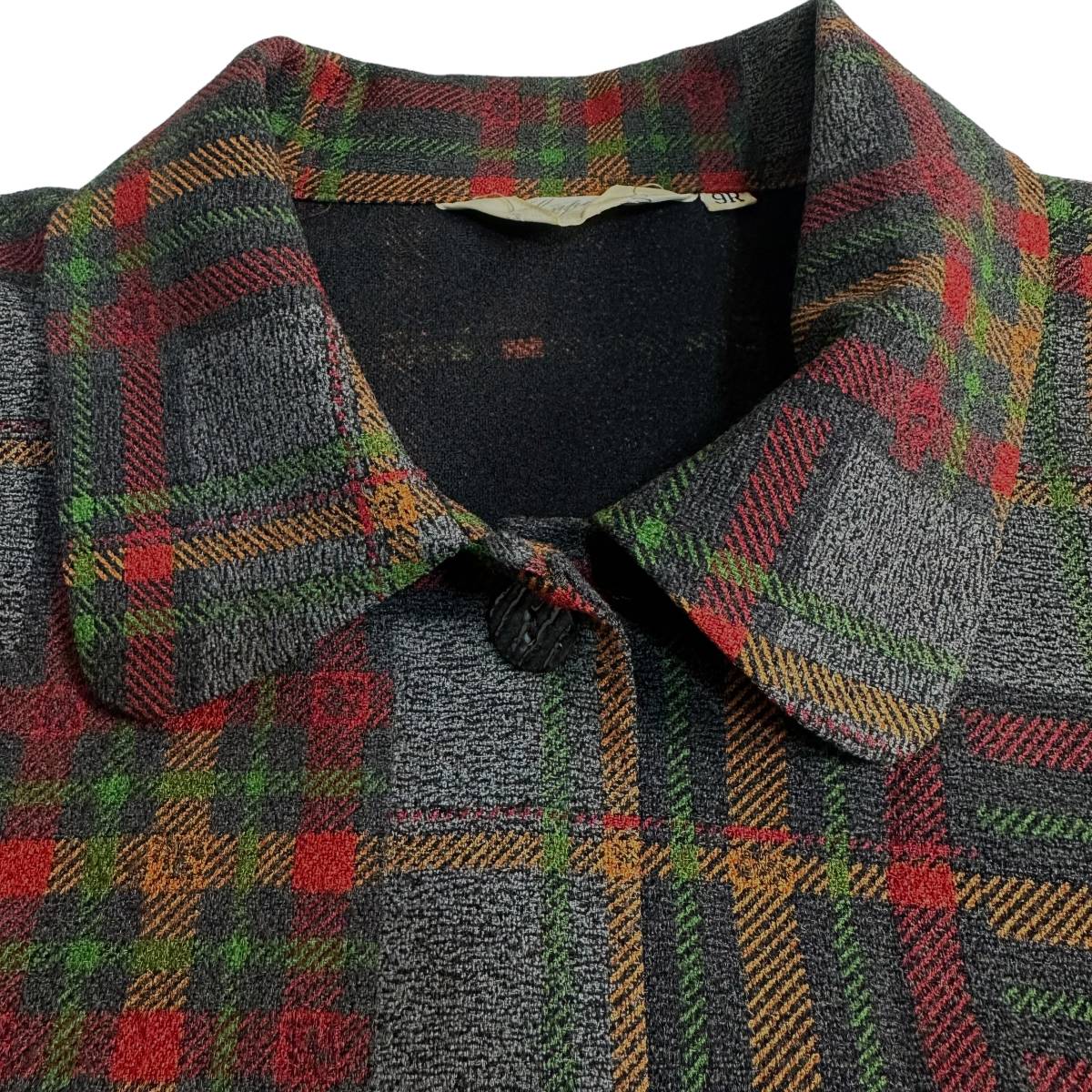 【VINTAGE】昭和レトロ チェック柄長袖シャツ ポリシャツ オールド 古着 お洒落 ブラウス ポリエステル100% ビンテージ