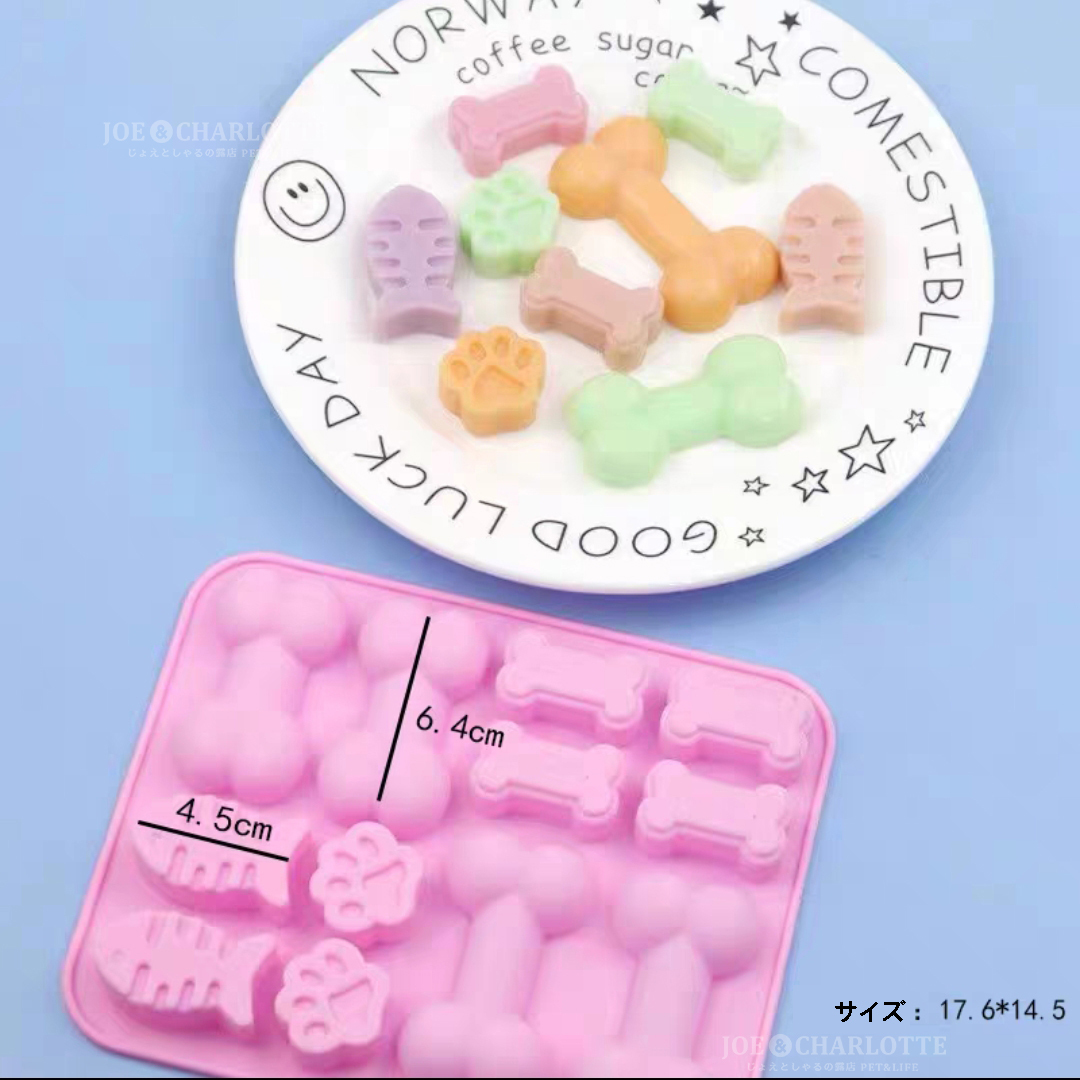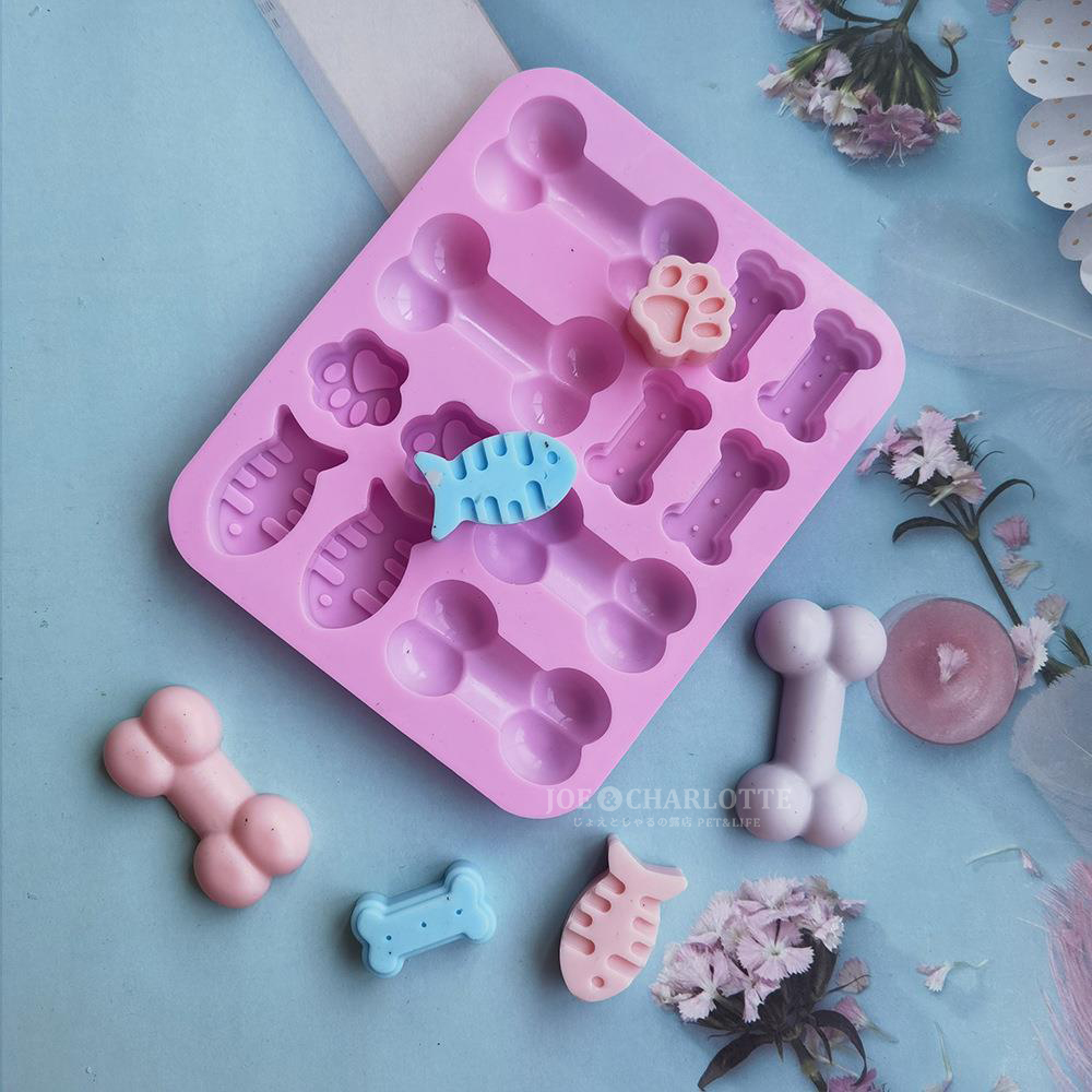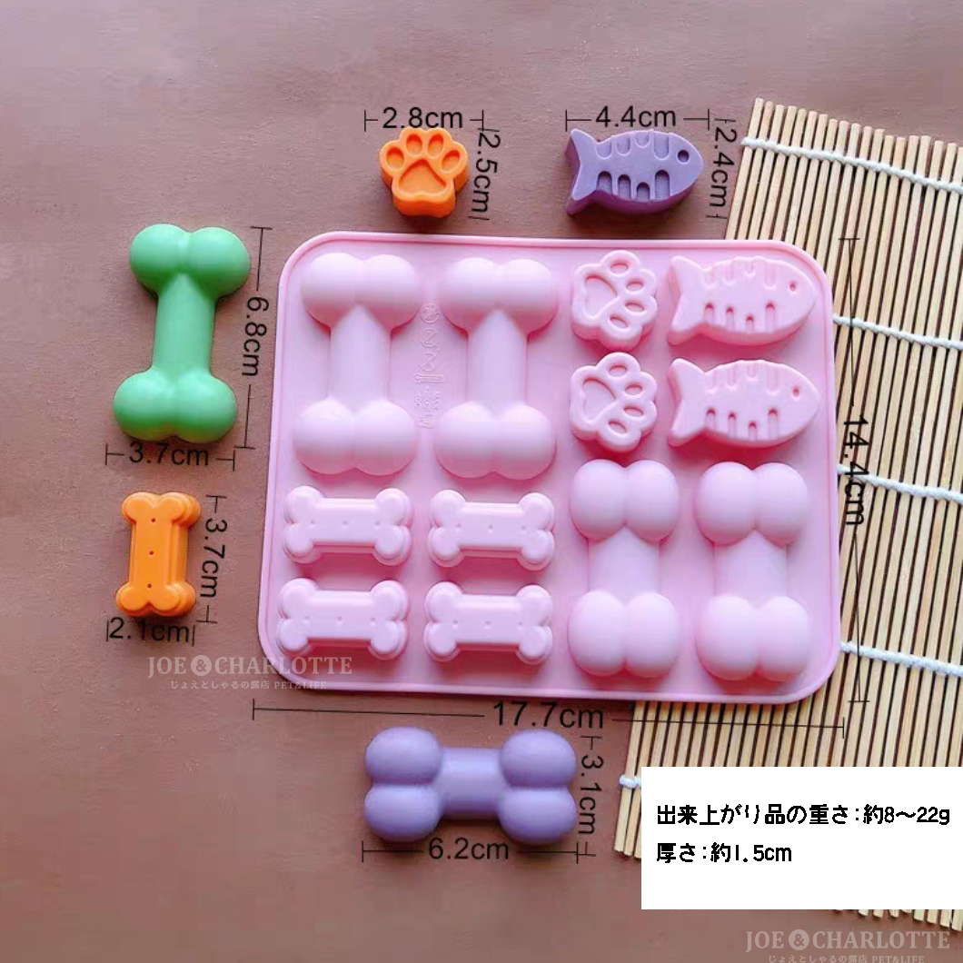 【ボーン&肉球型】チョコレートモールド シリコン製 クッキー ケーキ型抜き 魚型 じょえクック