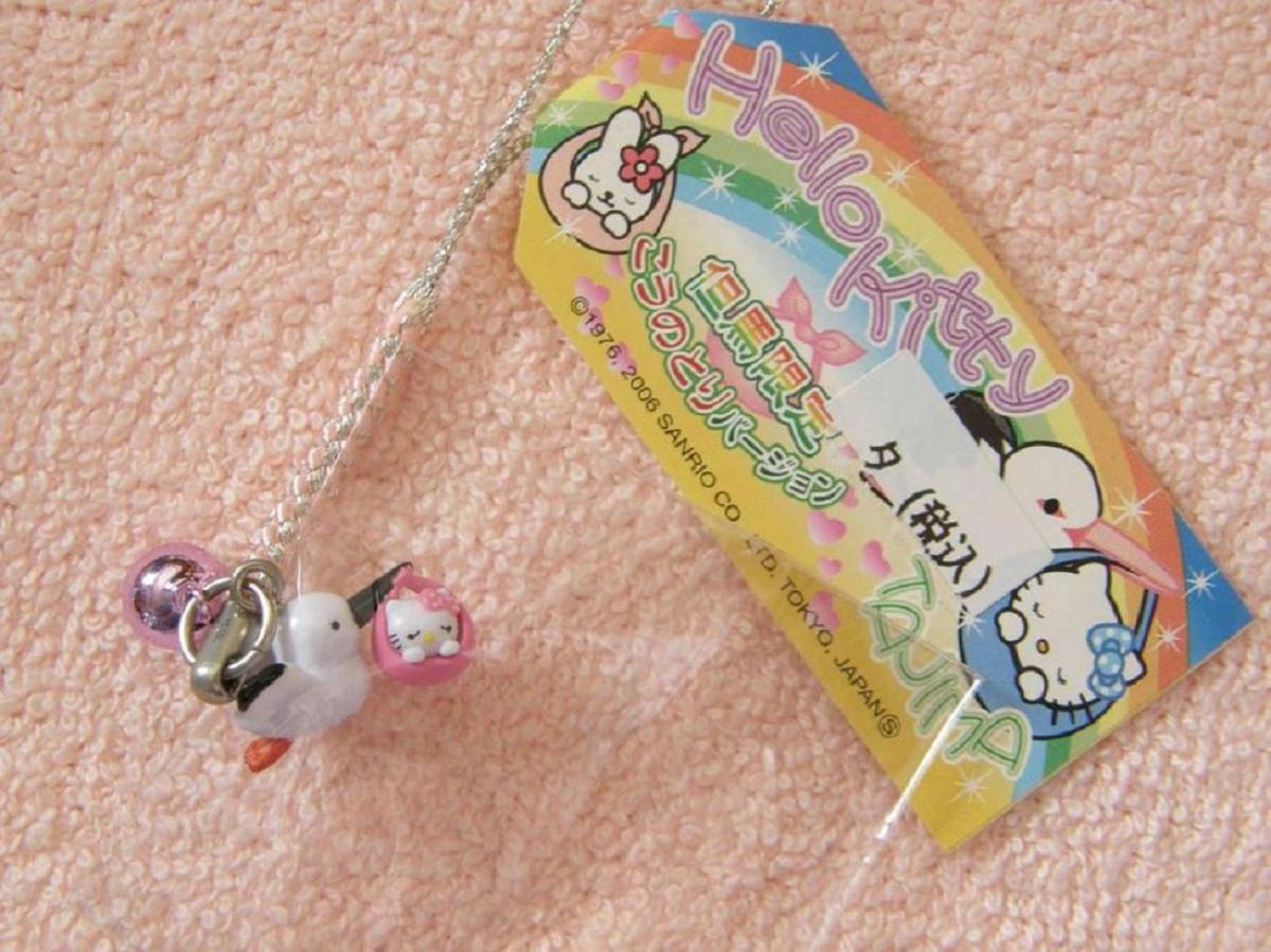 ★ ご当地キティ★ キティ根付 ★ 但馬限定 ★ こうのとりキティ根付(ピンク)★ 2008年 ★ 新品 ★