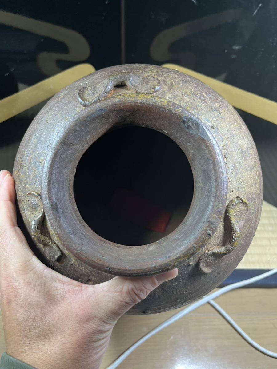 古備前 三耳 茶壺 時代保証 室町時代 赤出来 胡麻