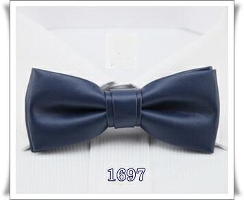 カジュアルなフェイクレザーの蝶ネクタイ(ネイビー) 1697