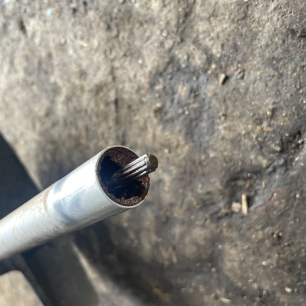 共立 RMB253から取り外したパイプシャフト フレキシブルシャフトになります。 フレキシブルシャフト 欠品となっておりますのでご了承ください。 パイプ径約23ミリ シャフト径約6ミリ 歯数10山