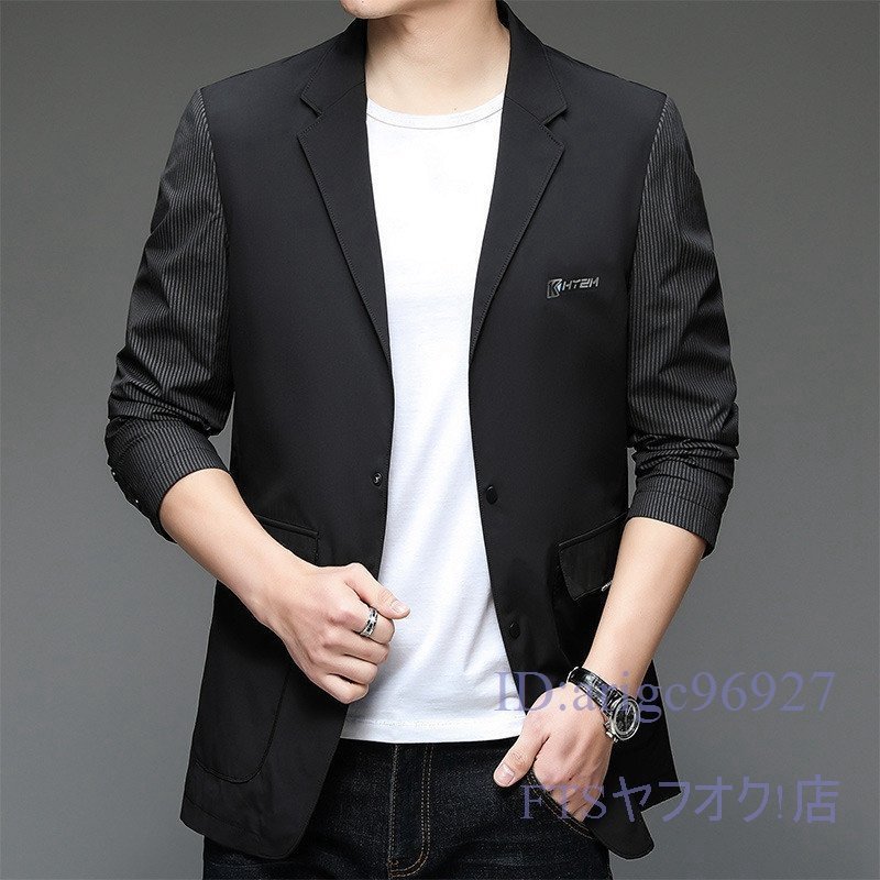 U345☆新品カジュアルジャケット テーラードジャケット 春秋ジャンパー メンズ スーツ ブレザー ブルゾン 切替 黒【GM81205】 M