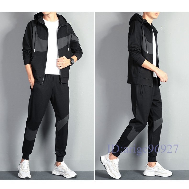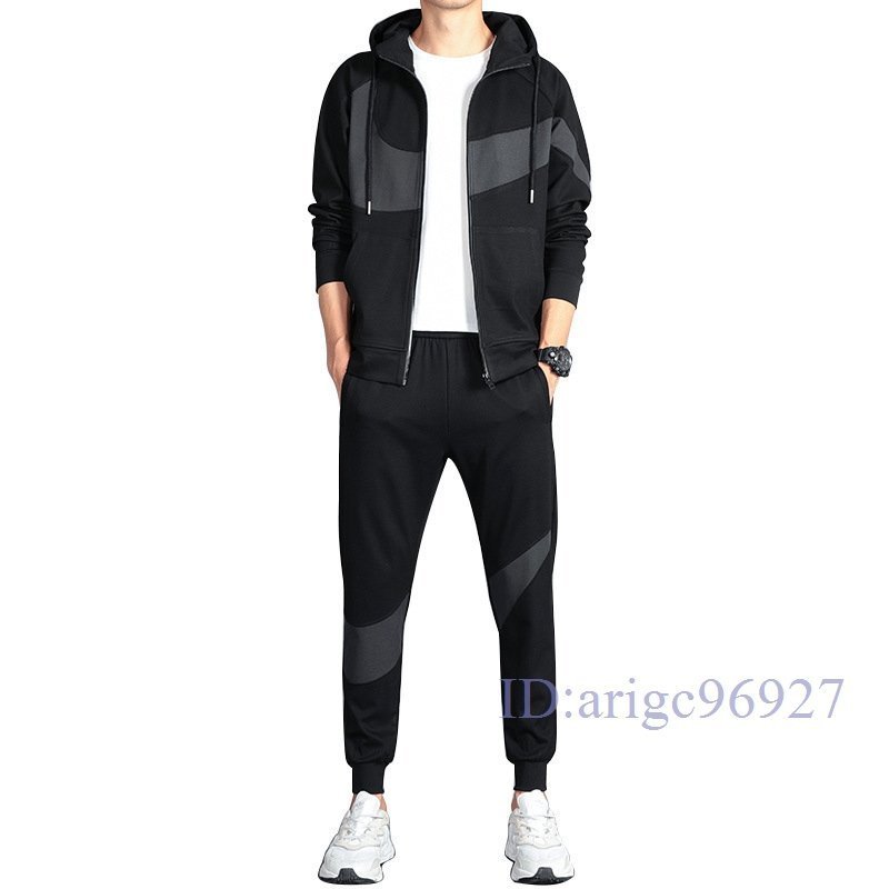 T415☆新品メンズ スウェット トレーニングウェア セットアップ上下セット 秋冬裏起毛 スポーツウエア パーカー トレーナー 大きいサイズ