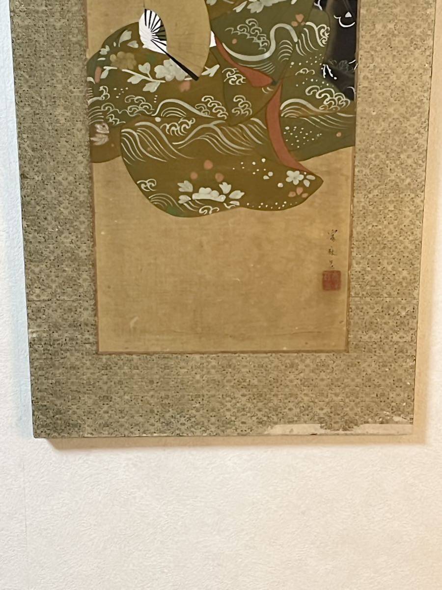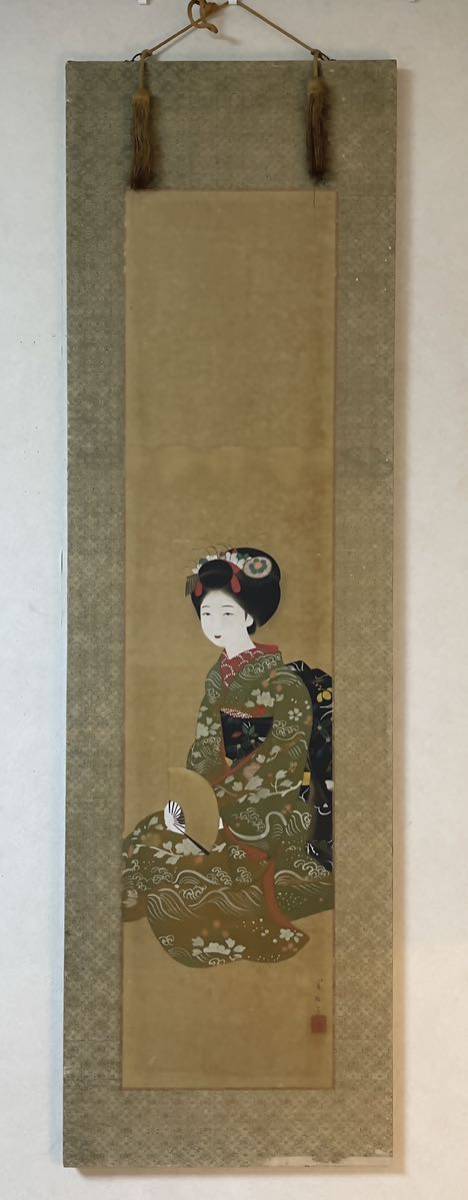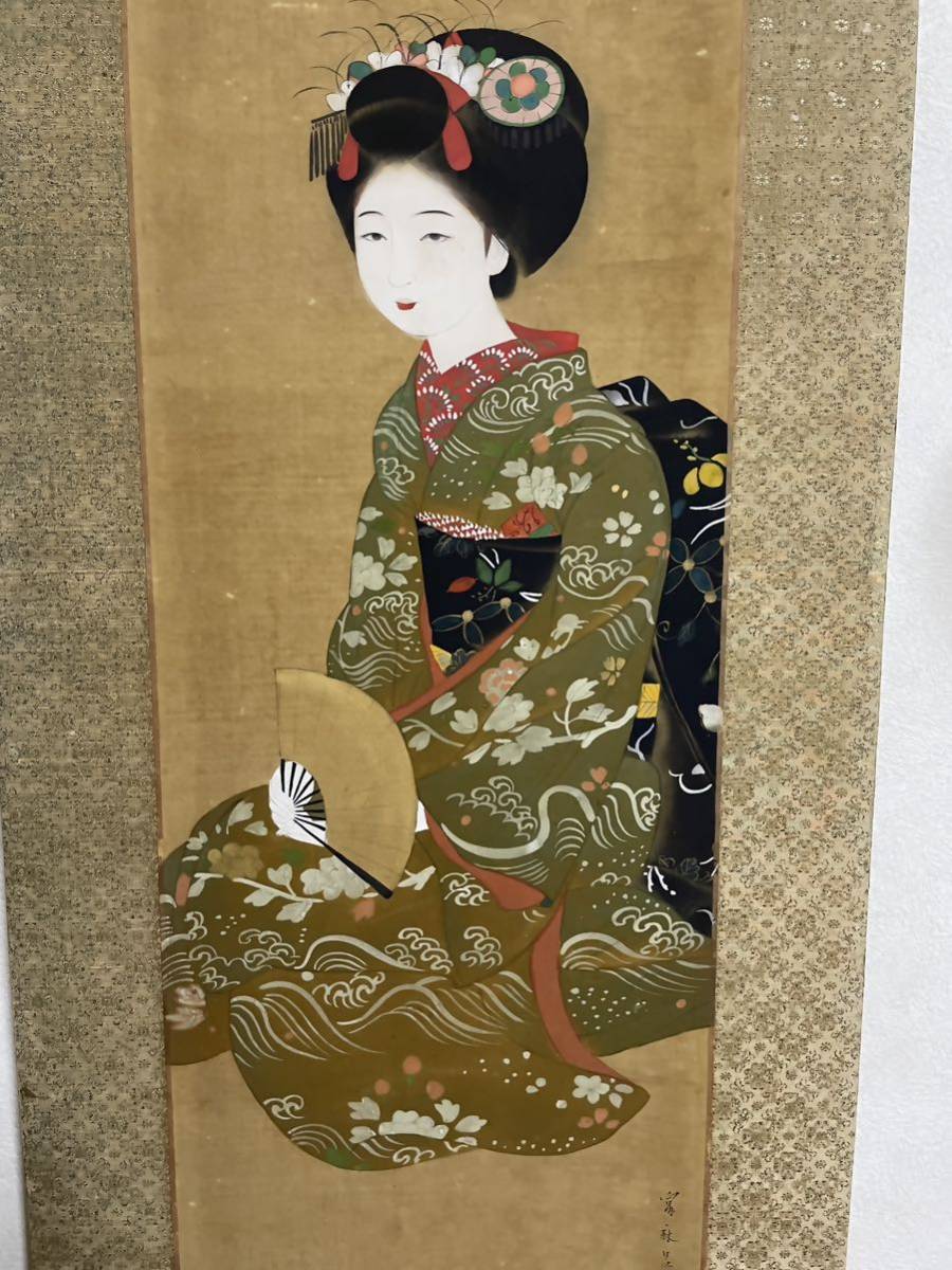 ・おそらく明治大正~昭和初期頃の美人画作品。個性的な美人画作品が多い作家で、今回の出品のような正統派の掛けやすい・合わせやすい美人画作品は稀品。関西美人画の大御所大家。