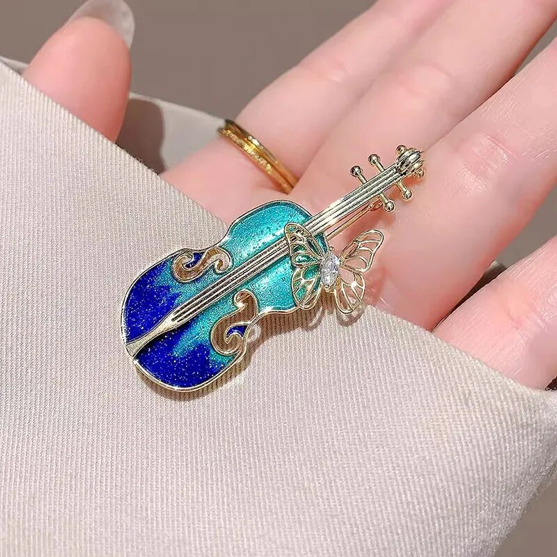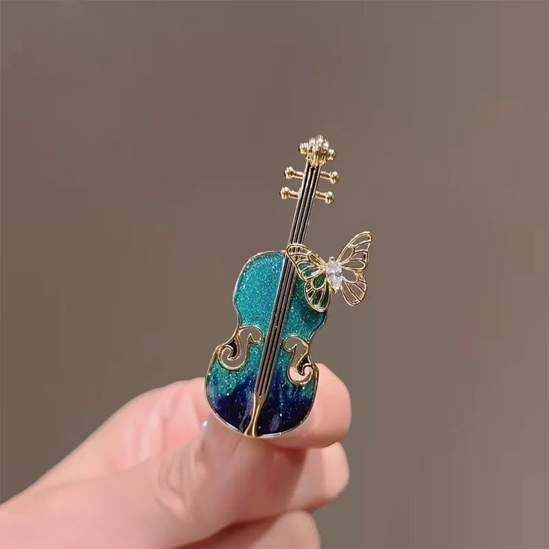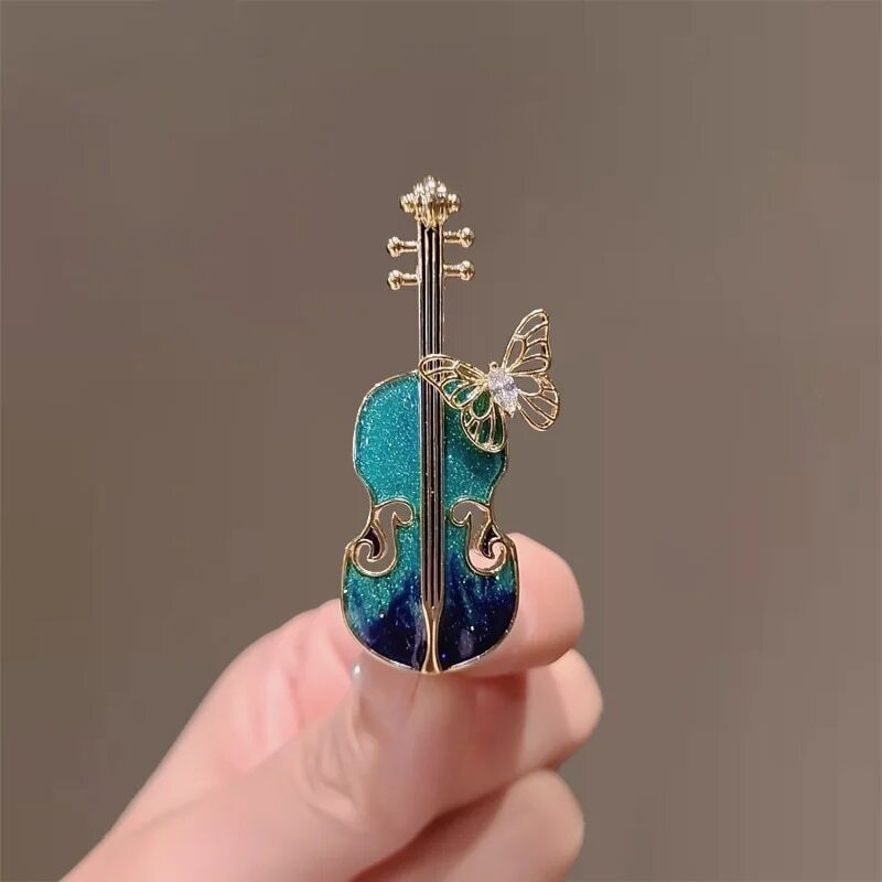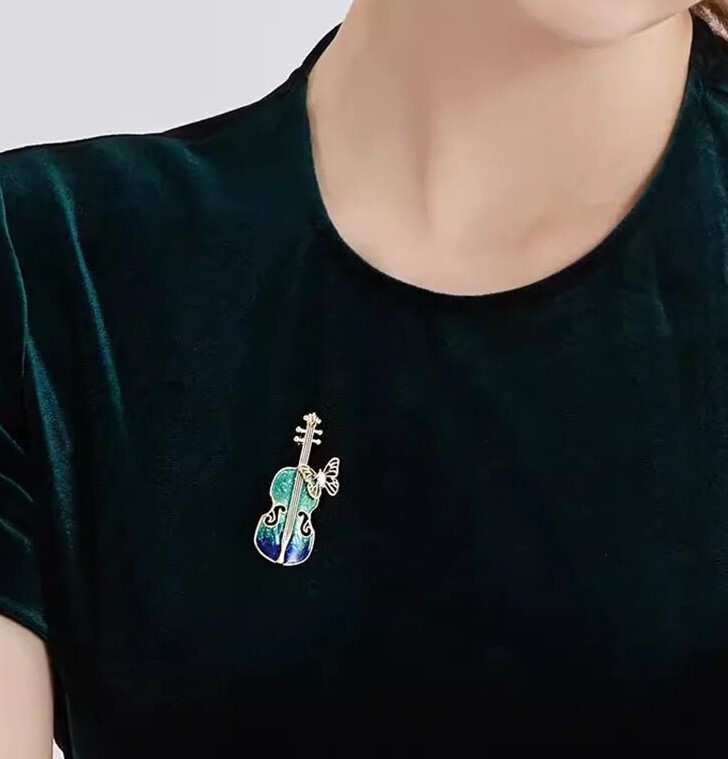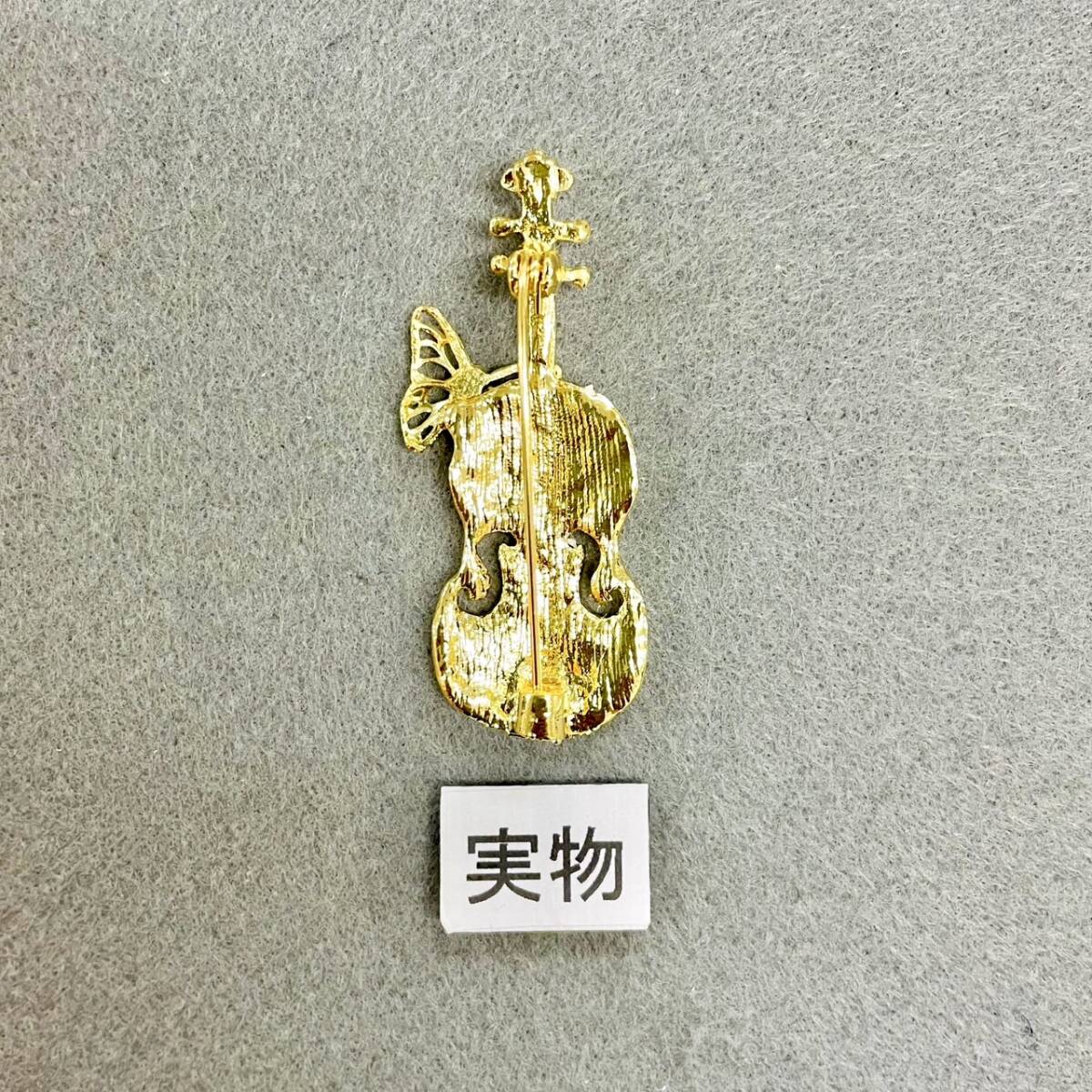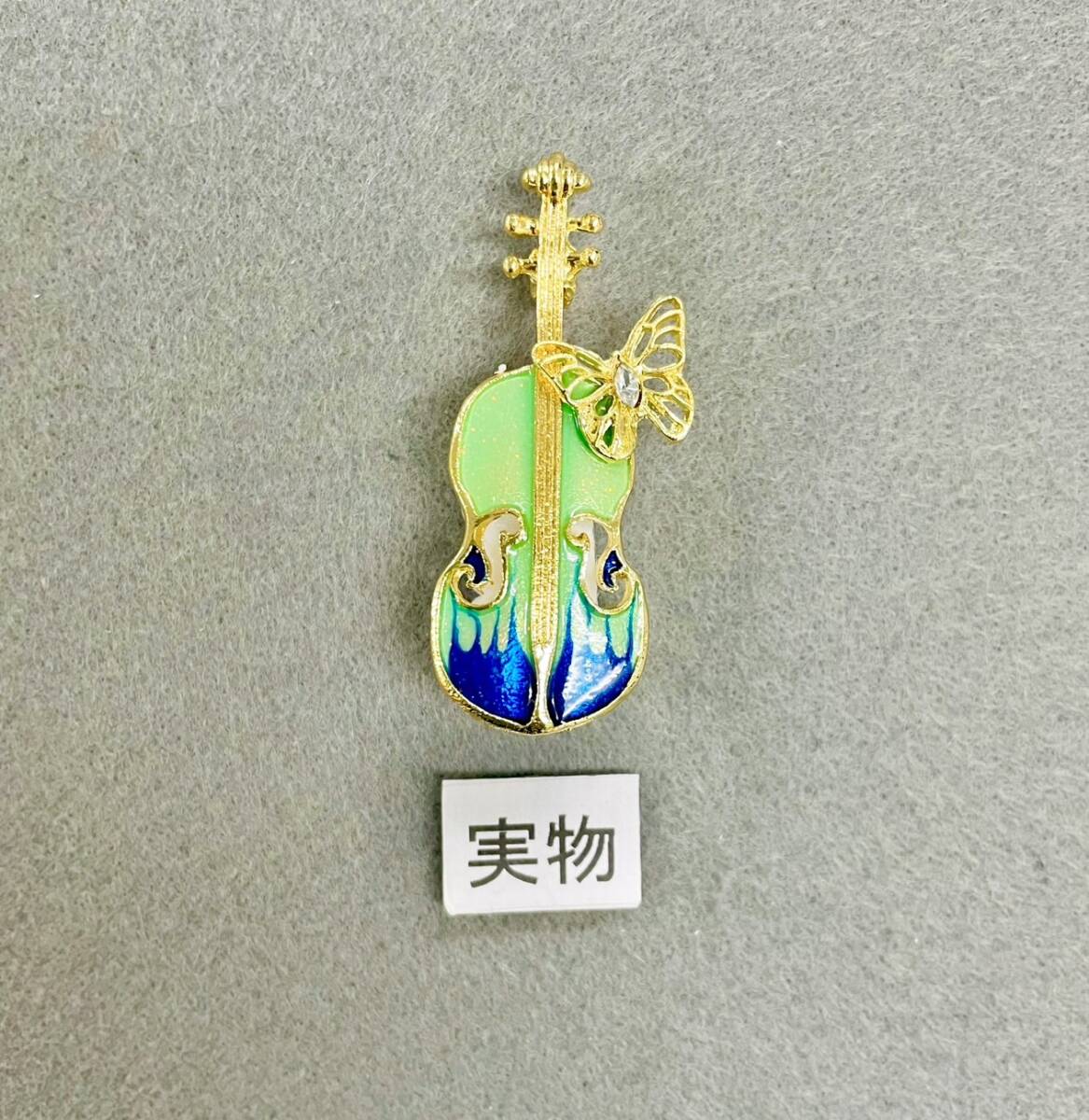 バイオリン 蝶々 ブローチ エメラルドグリーン キラキラ 楽器 演奏 昆虫 虫 弦楽器 贈りもの 贈り物 新品