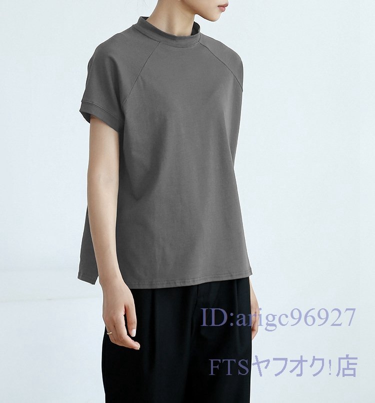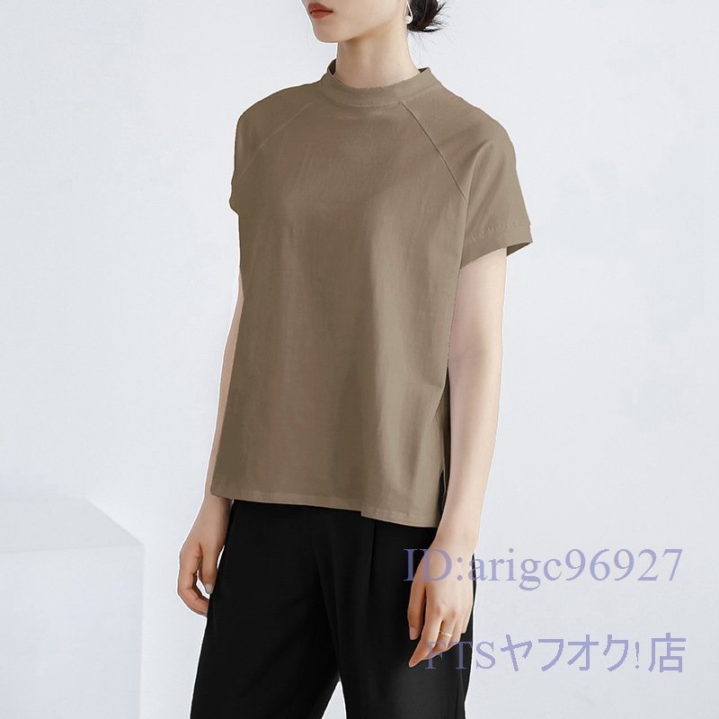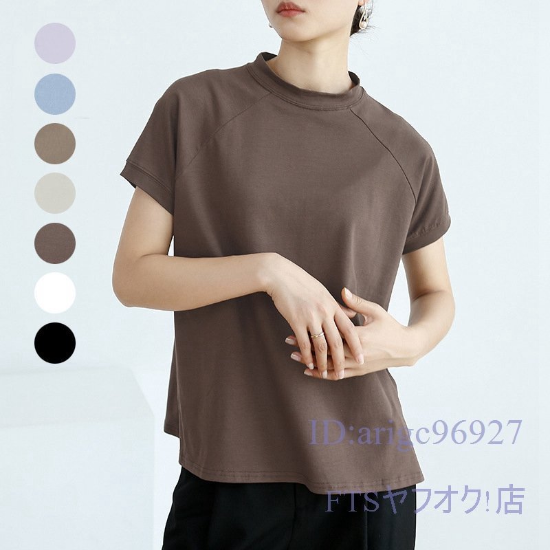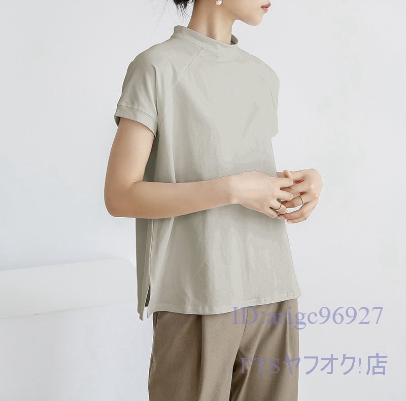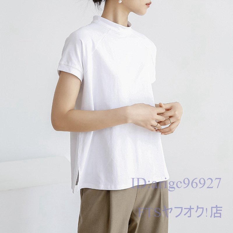 A2363☆新品レディース Tシャツ 綿95% (2件セット)ハイネック 無地 ストレッチ 半袖 トップス 上着 インナー カジュアル