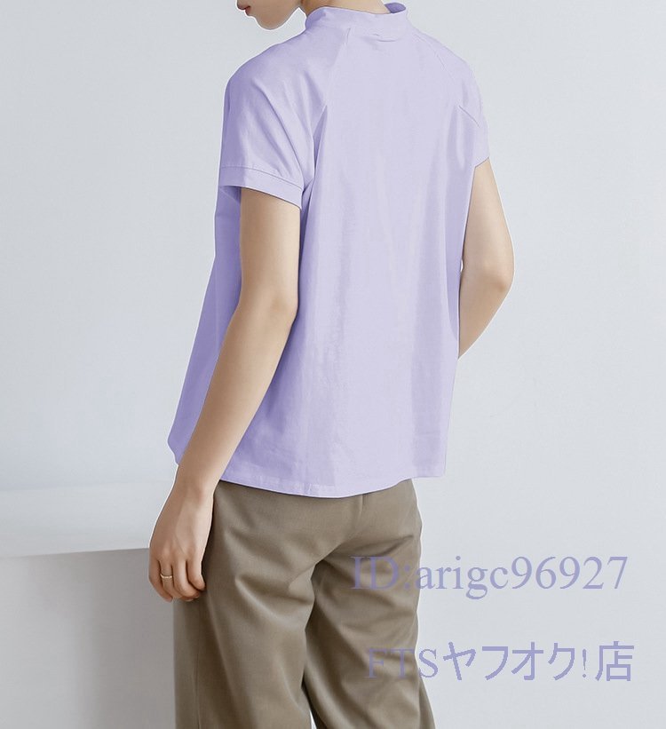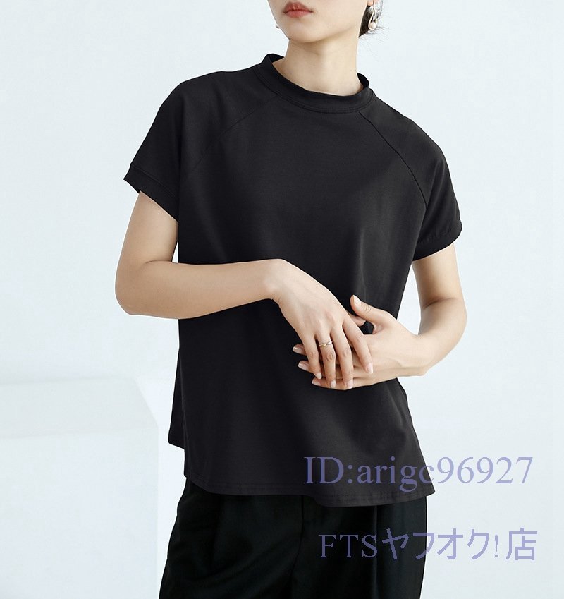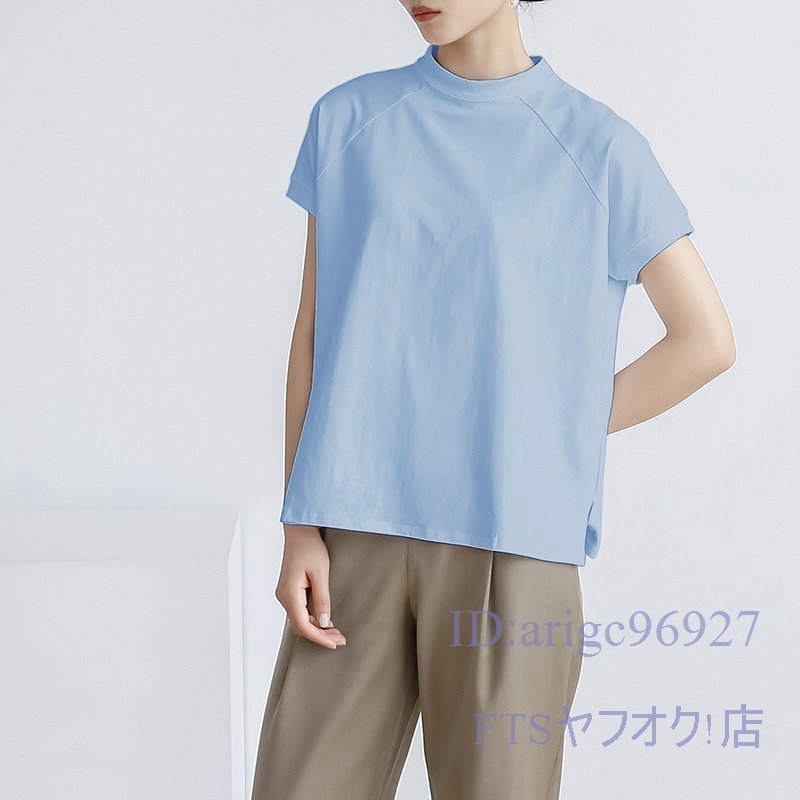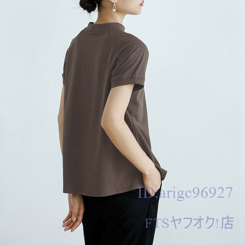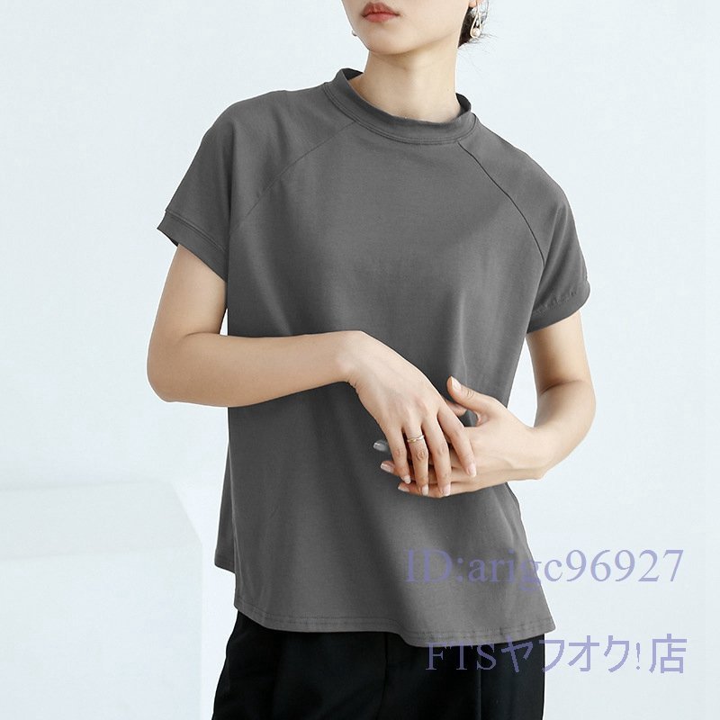 A2363☆新品レディース Tシャツ 綿95% (2件セット)ハイネック 無地 ストレッチ 半袖 トップス 上着 インナー カジュアル