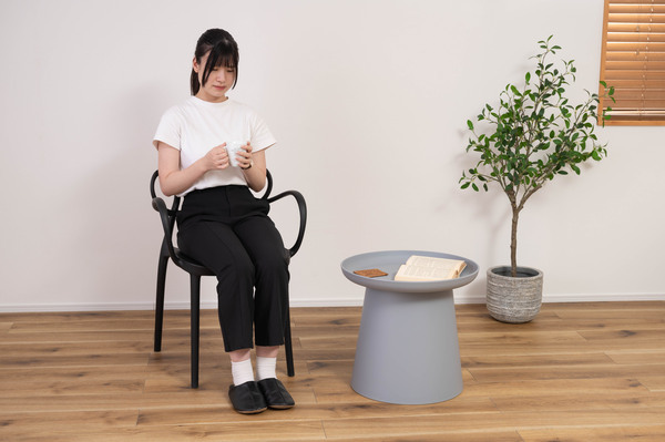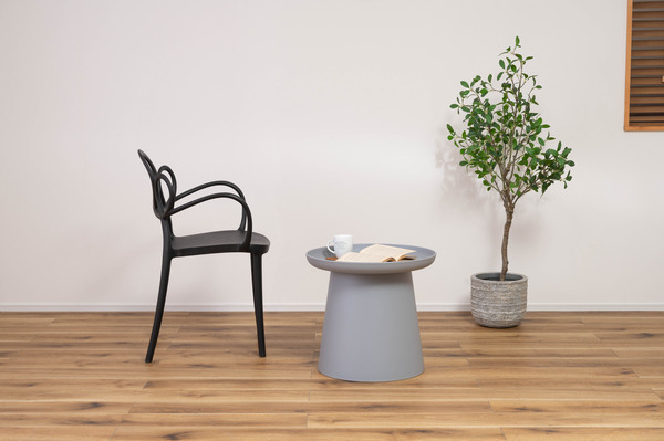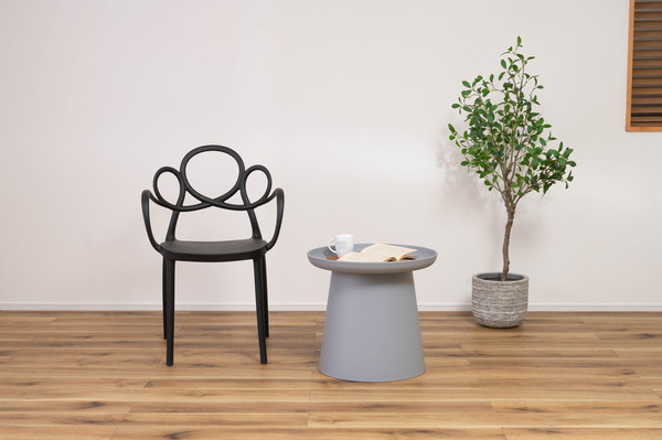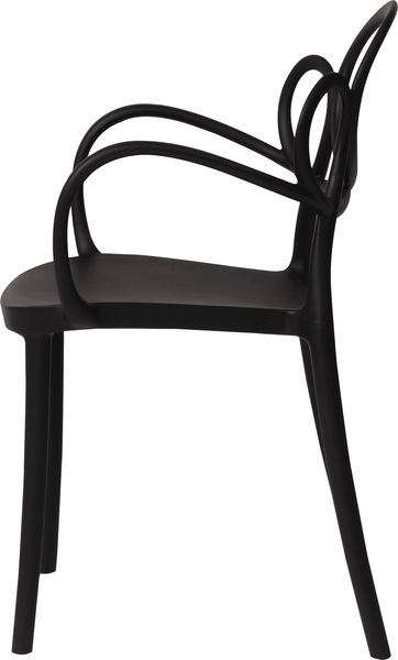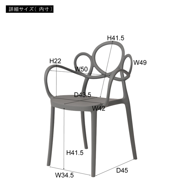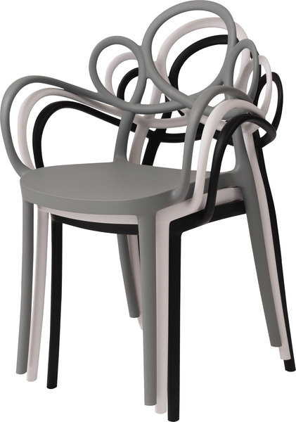 アーム部分の曲線がひじや手にぴったりと沿うデザイン。汚れてもお手入れのしやすいポリプロピレンを使用しており、スタッキング可能なのでコンパクトに収納できます。